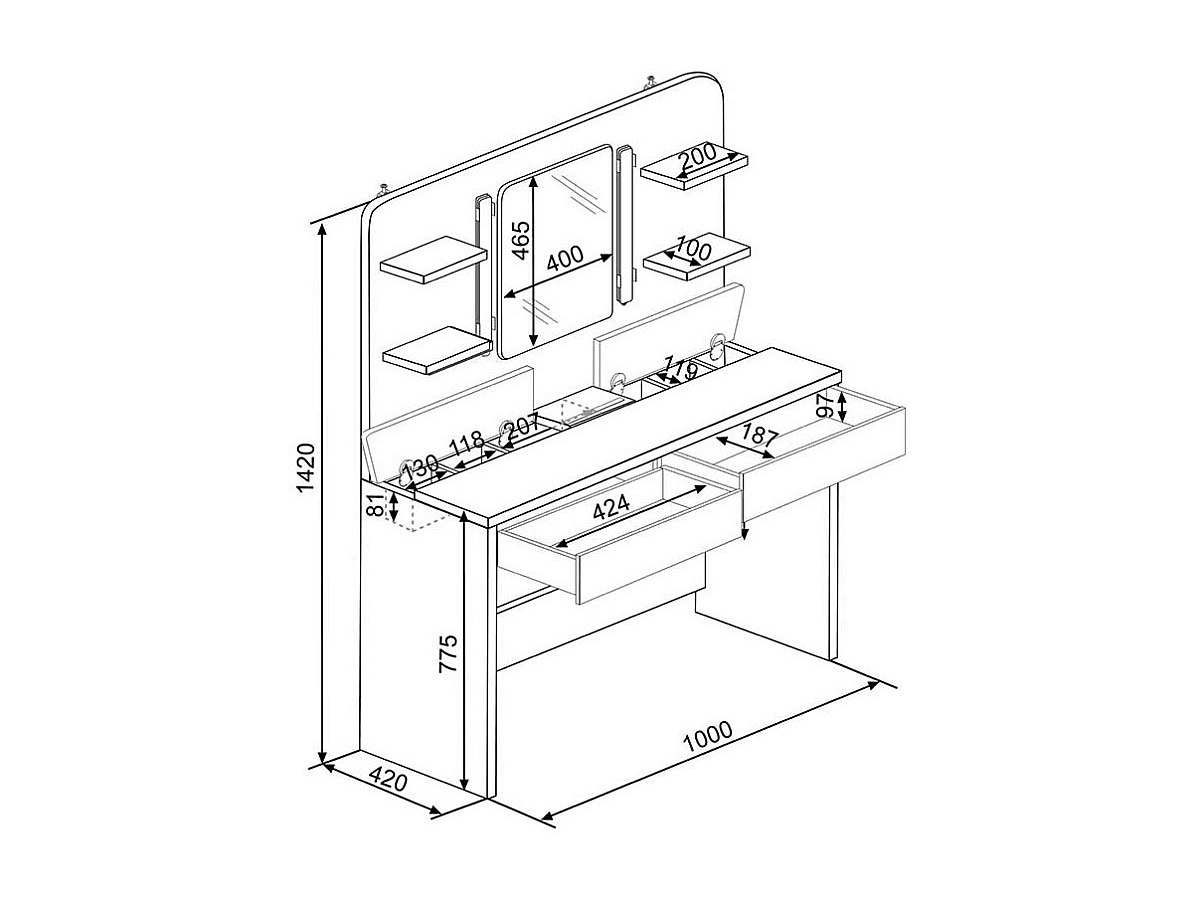 As linhas arredondadas e elegantes do toucador AMALIA darão suavidade e charme ao seu quarto. Graças ao seu espelho grande iluminado por LEDs, terá todo o prazer em preparar-se diante deste bonito toucador. Muito engenhoso, o toucador AMALIA esconde inúmeros espaços de arrumação: 2 gavetas grandes e 2 compartimentos escondidos sob a prateleira!