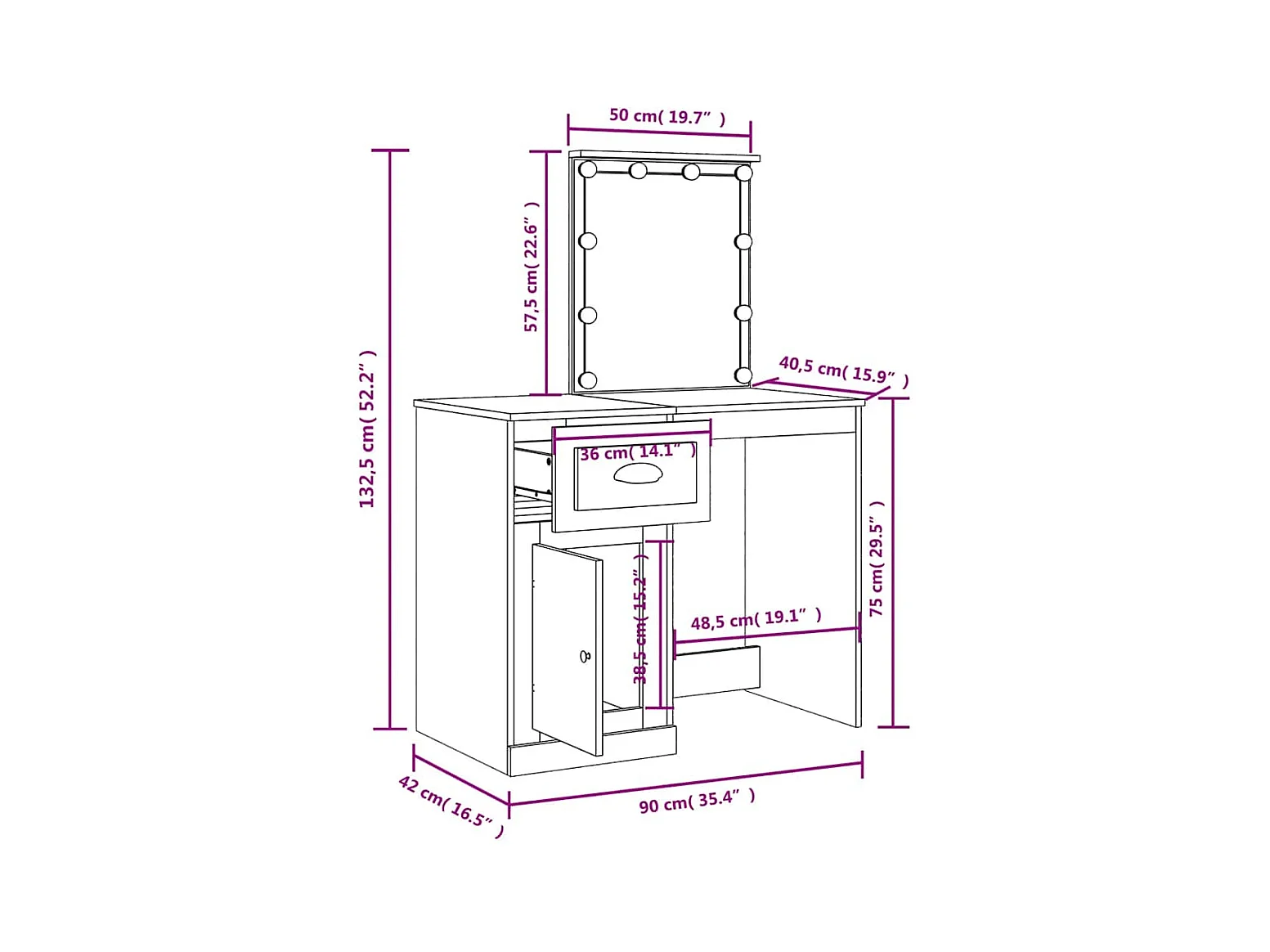 Toucador com luzes LED 90x42x132,5 cm carvalho castanho PT415454
