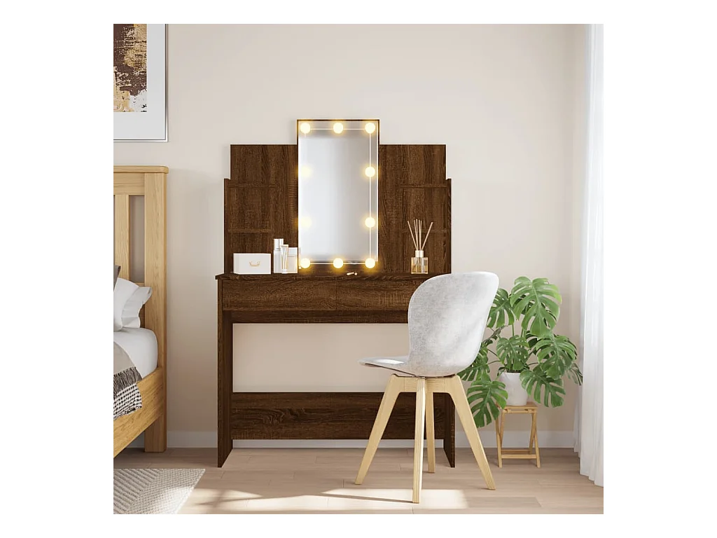 Toucador com luzes LED carvalho castanho 96x40x142 cm