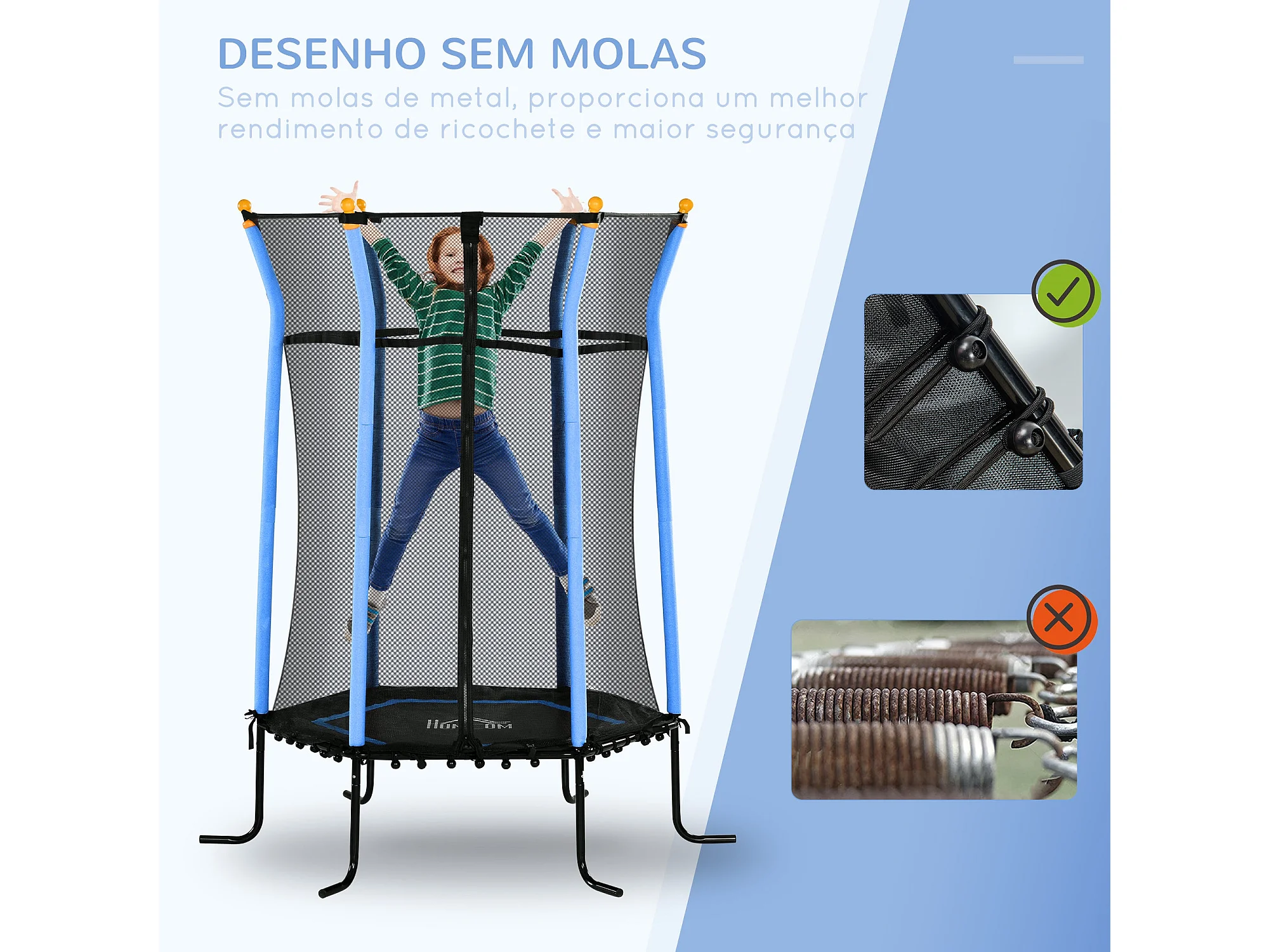 Trampolim Infantil Seguro para Crianças Acima de 3 Anos com Rede e Estrutura de Aço - Modelo Toulon Azul