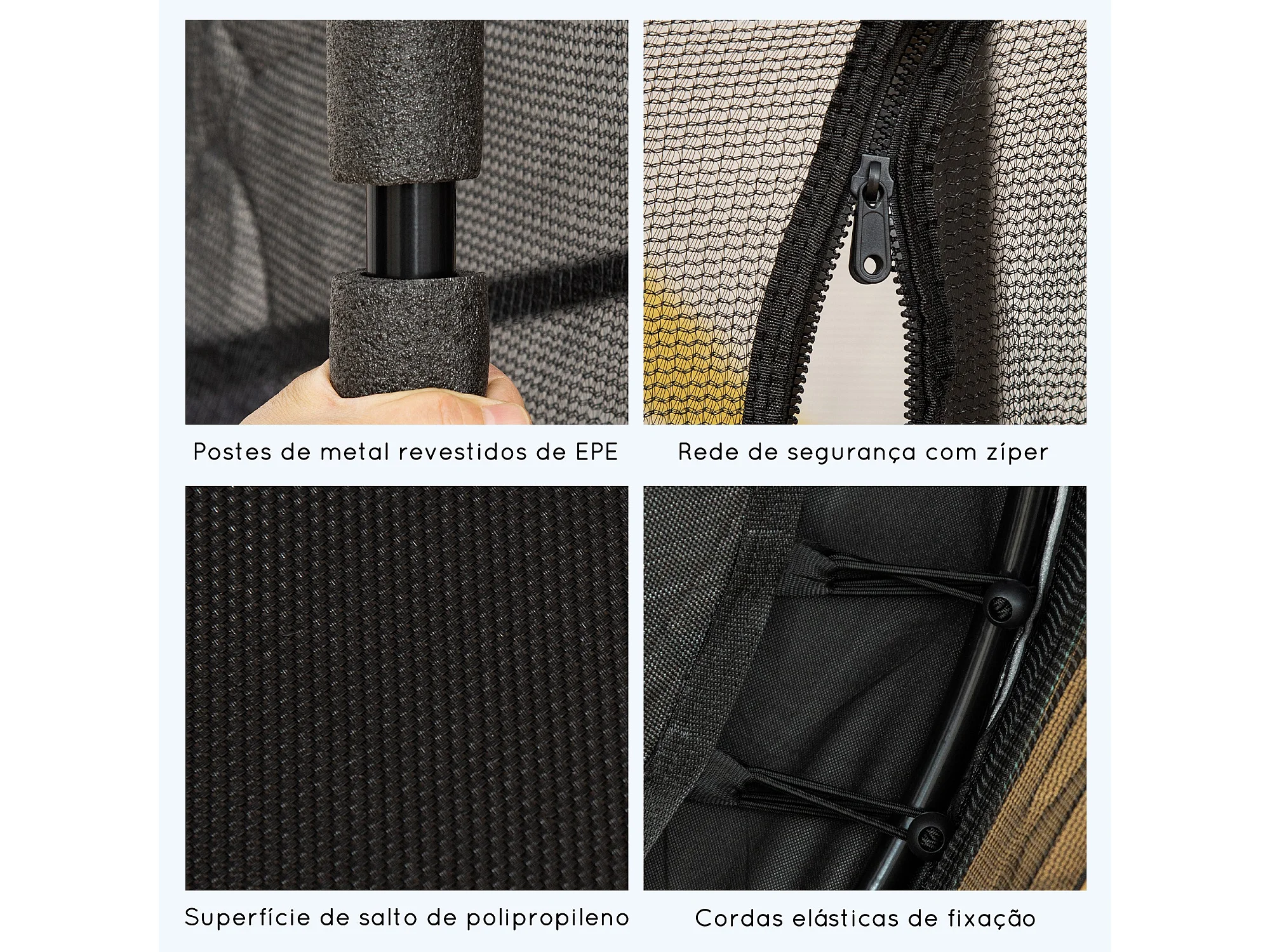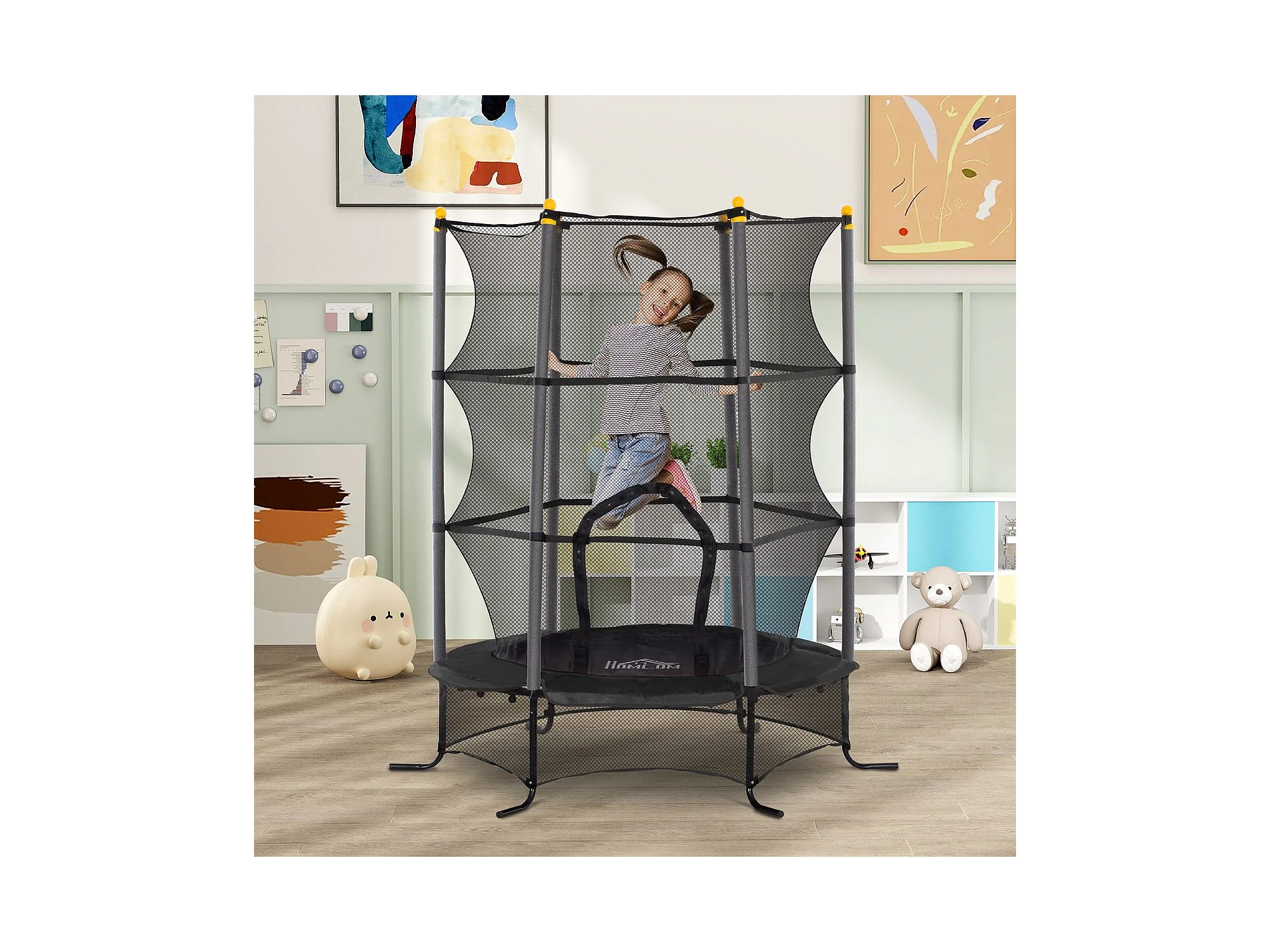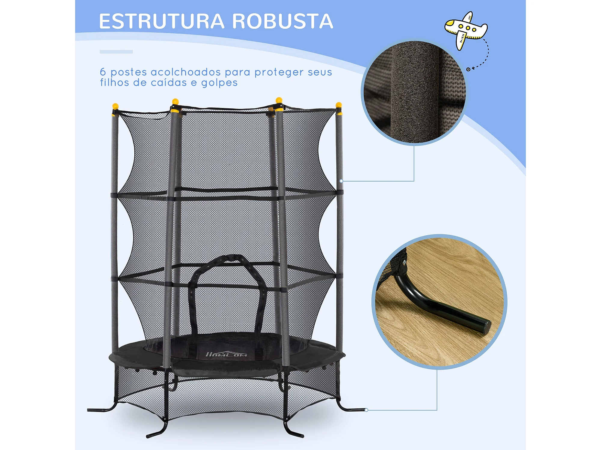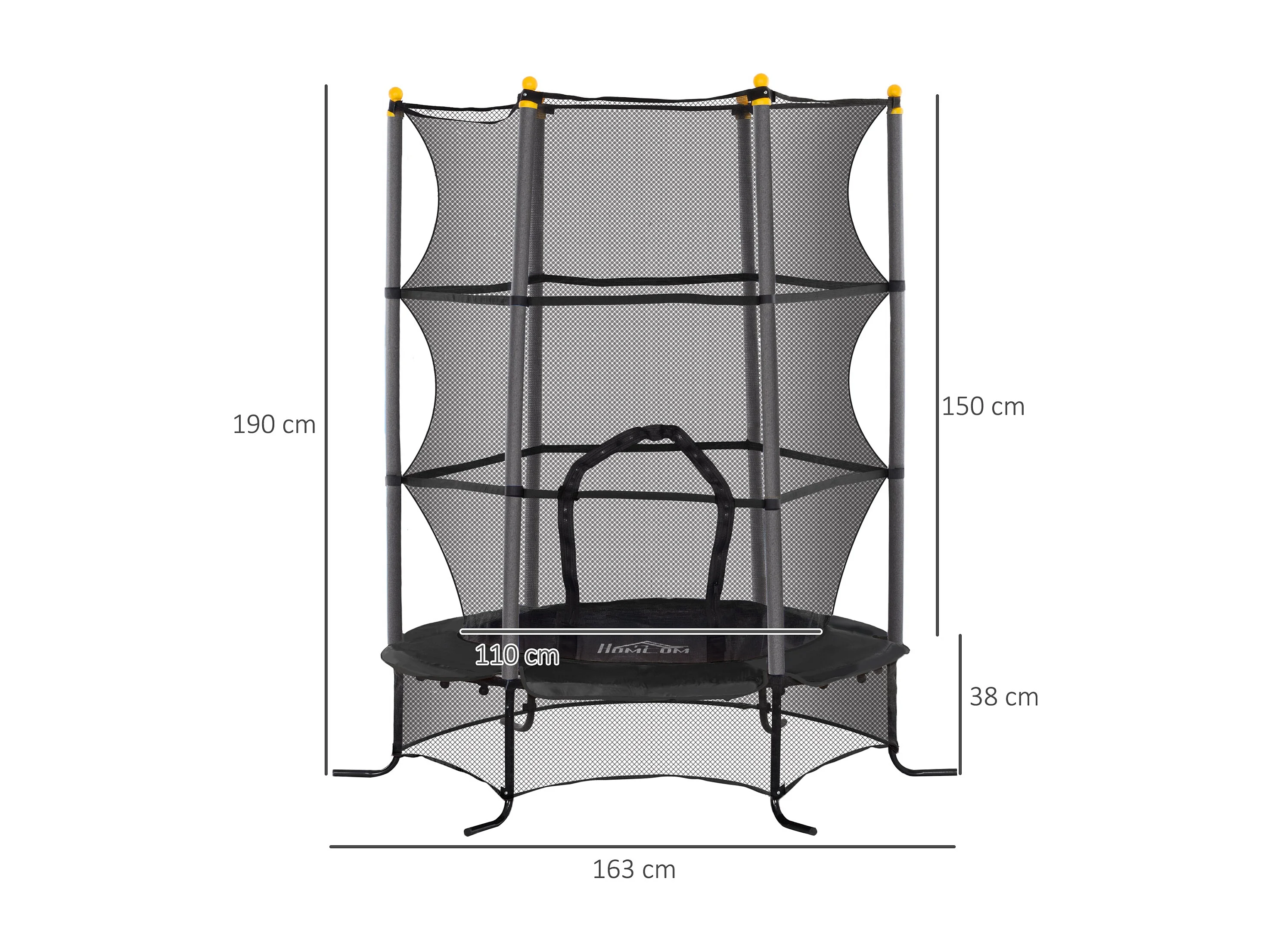 Trampolim Infantil JumpSafe com Rede de Segurança e Estrutura de Aço - Ø163x190 cm - Preto Seguro e Durável