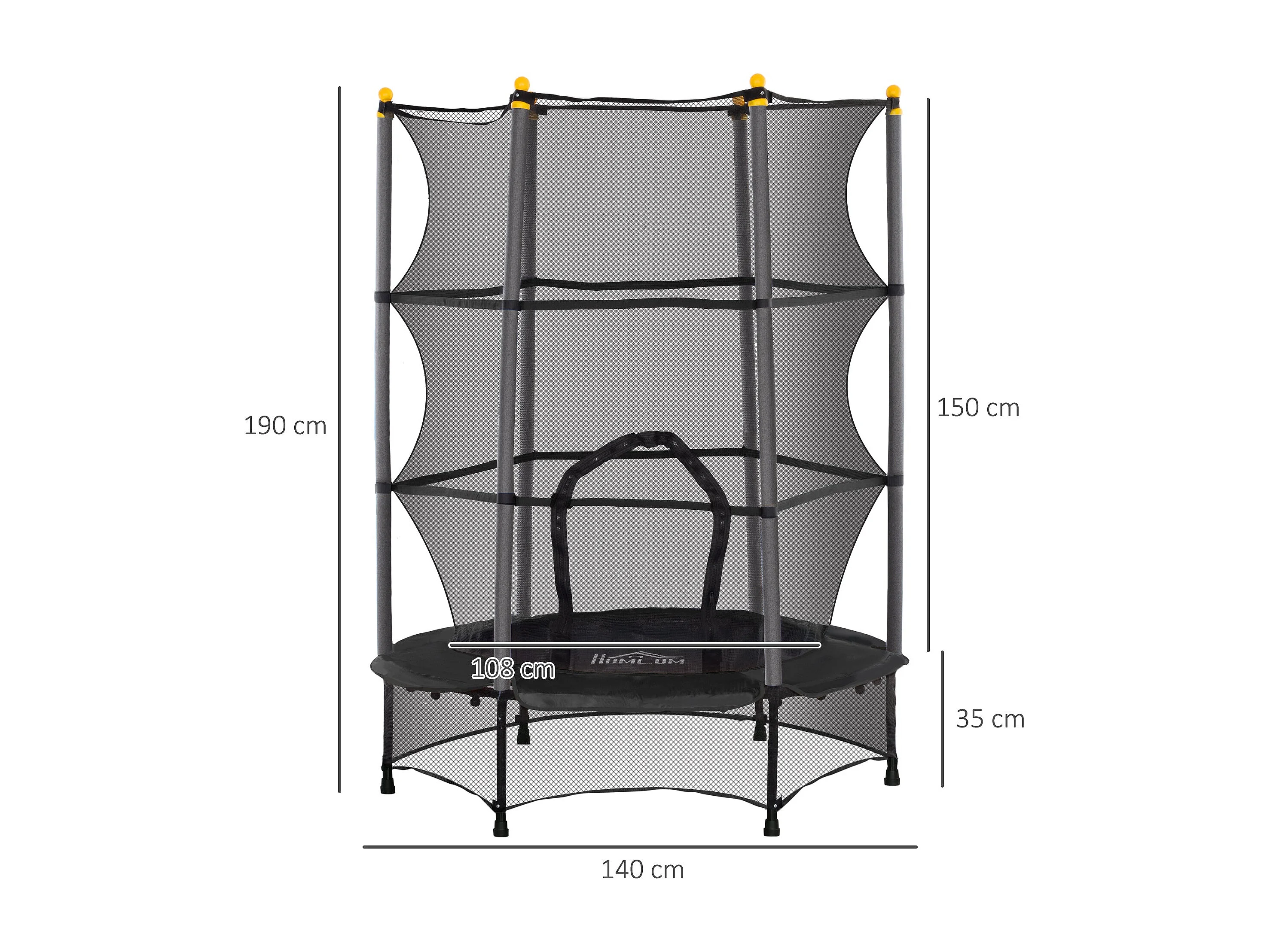 Trampolim Infantil Seguro "Jumpy" com Rede - Ø140x190 cm - Preto para Diversão Segura