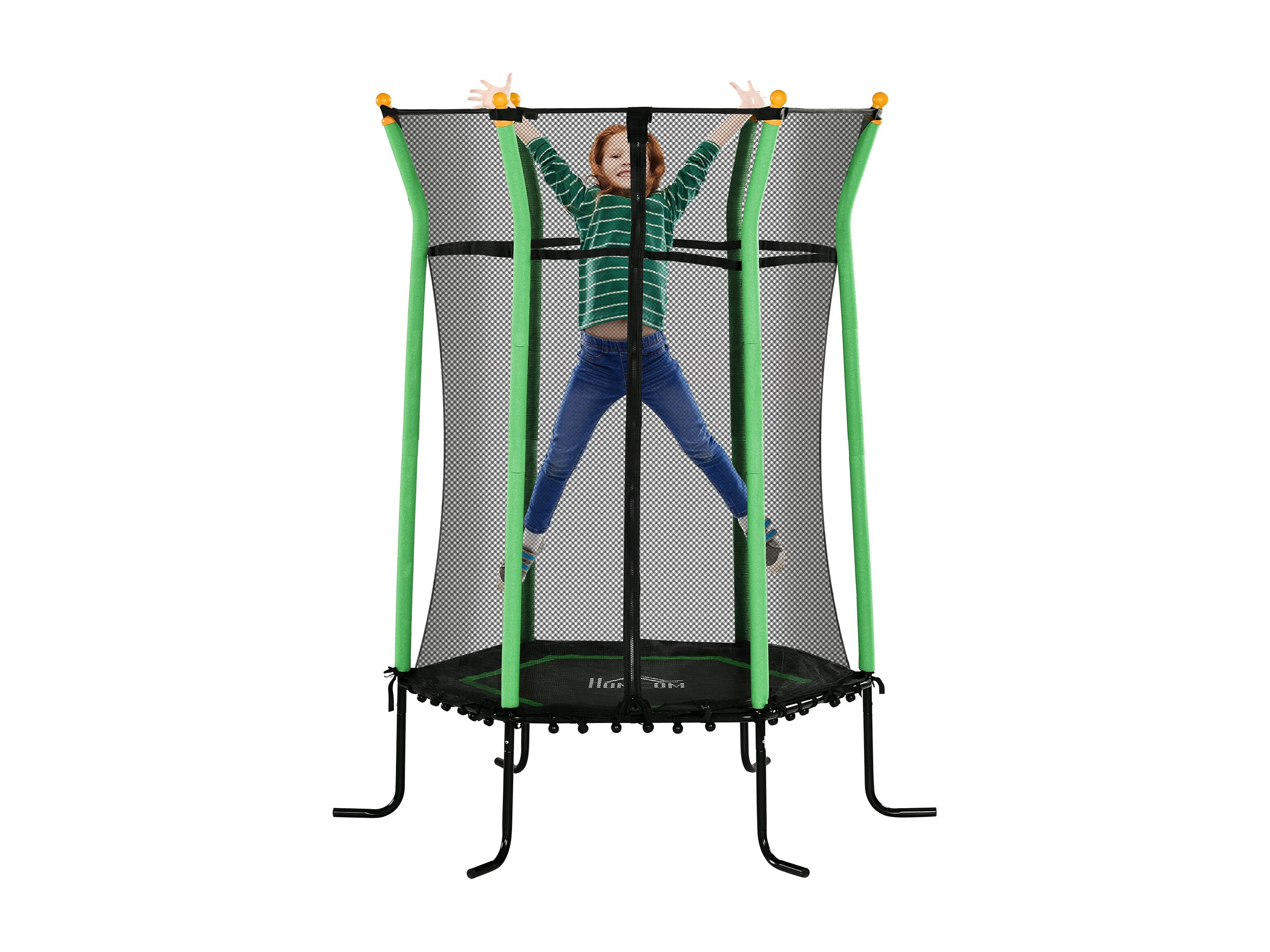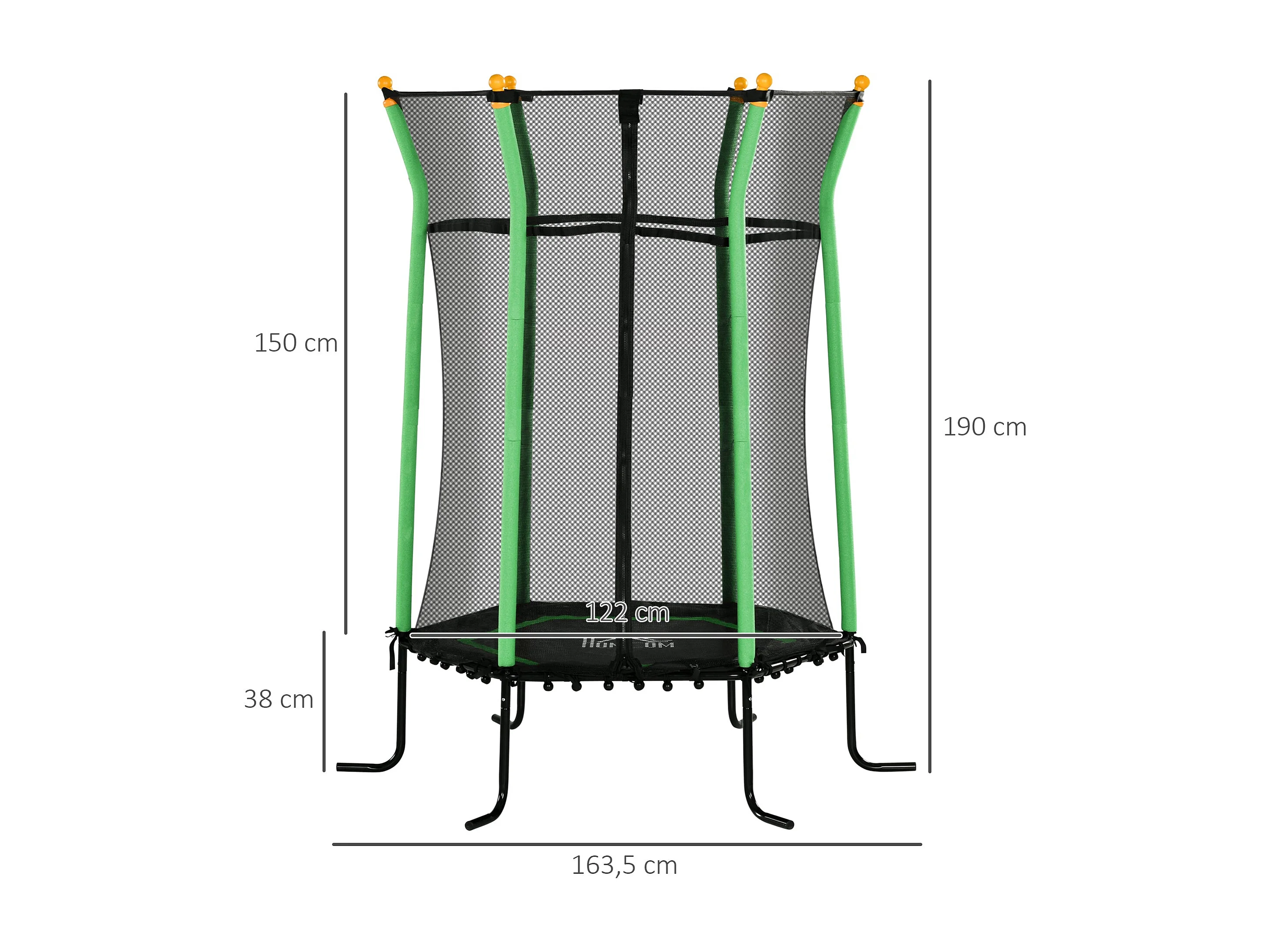 Trampolim Infantil Seguro para Crianças Acima de 3 Anos - Cama Elástica Verde com Rede de Segurança e Estrutura Resistente