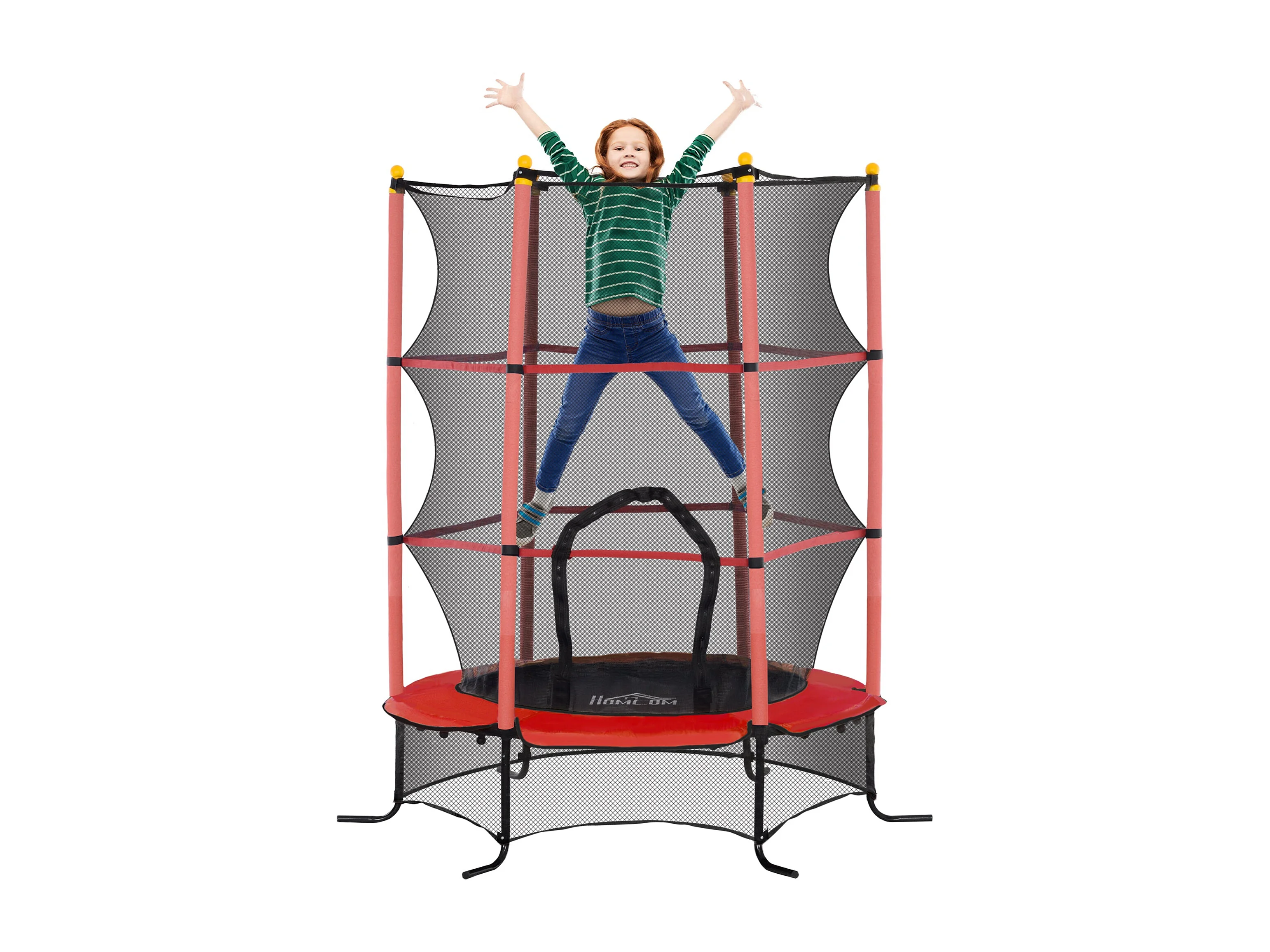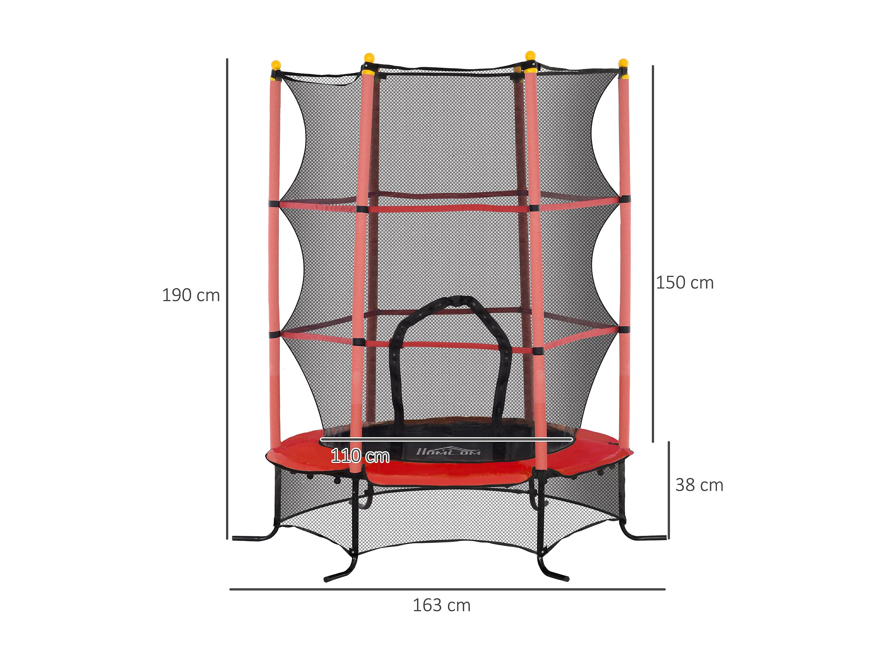 Trampolim Infantil Seguro com Rede de Proteção e Estrutura de Aço para Uso Interno e Externo - Modelo Lyon 163,5x190 cm Vermelho