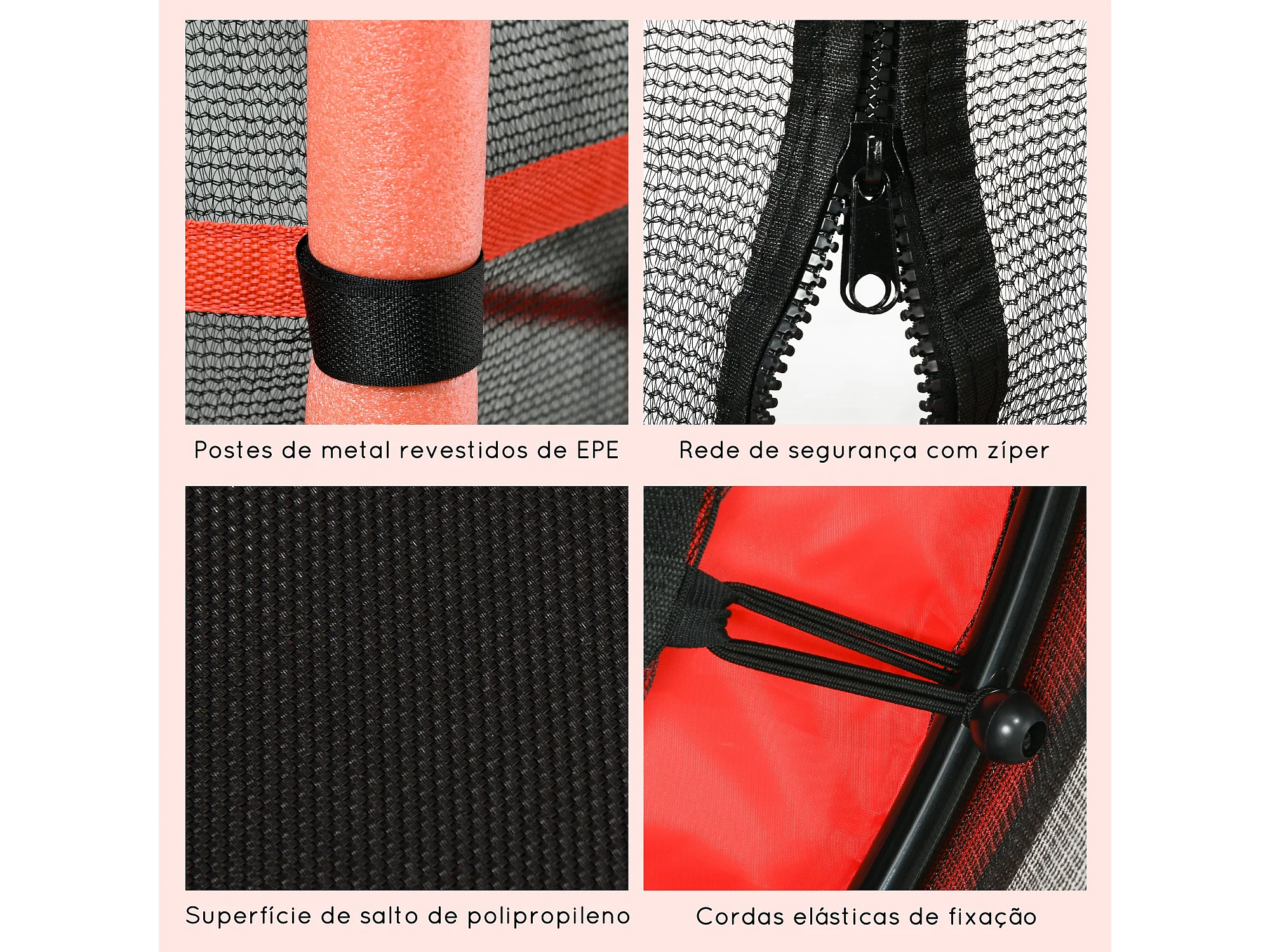 Trampolim Infantil Seguro com Rede de Proteção e Estrutura de Aço para Uso Interno e Externo - Carga Máxima de 50kg, Rosa, Ø163,5x190 cm