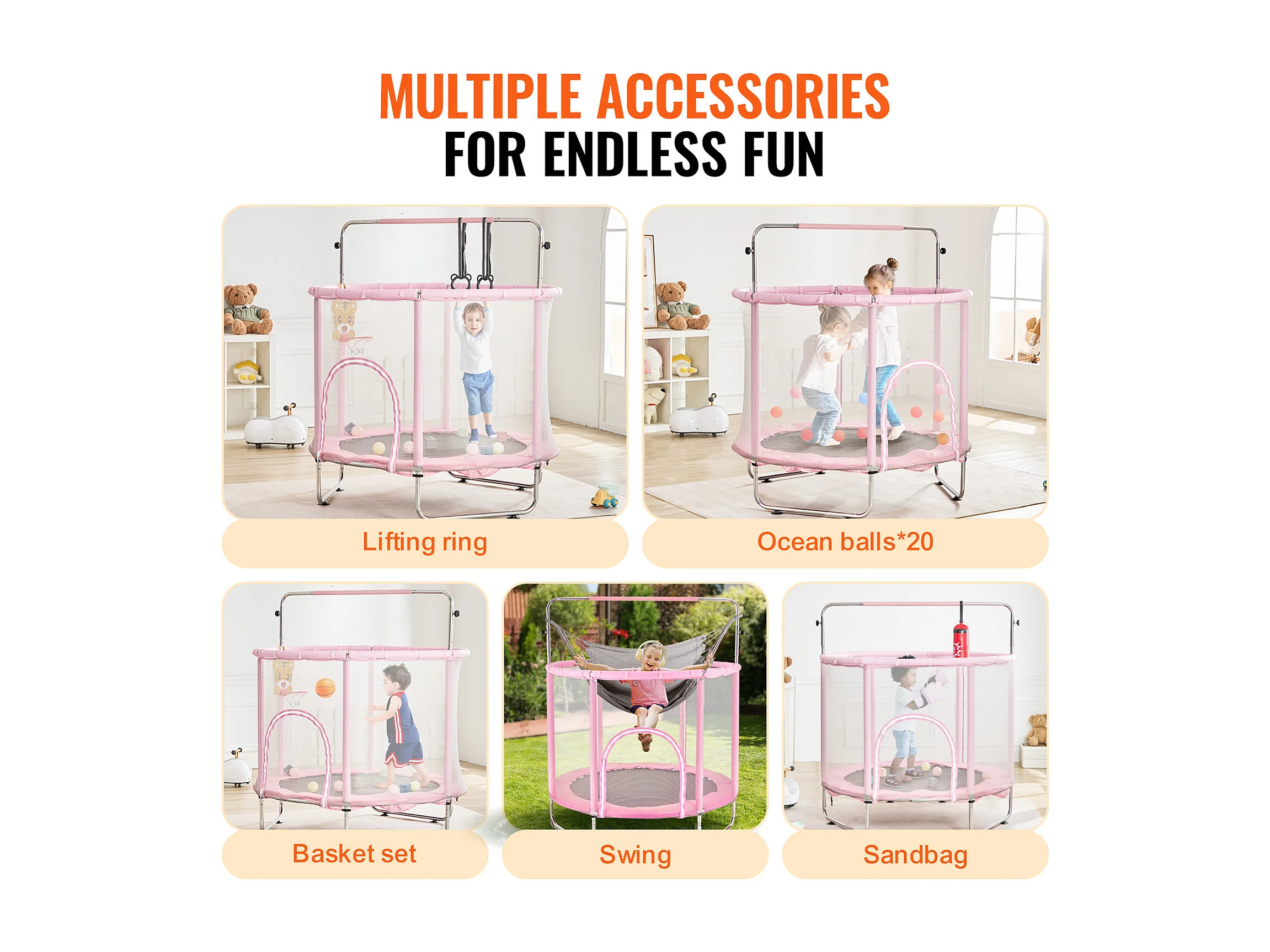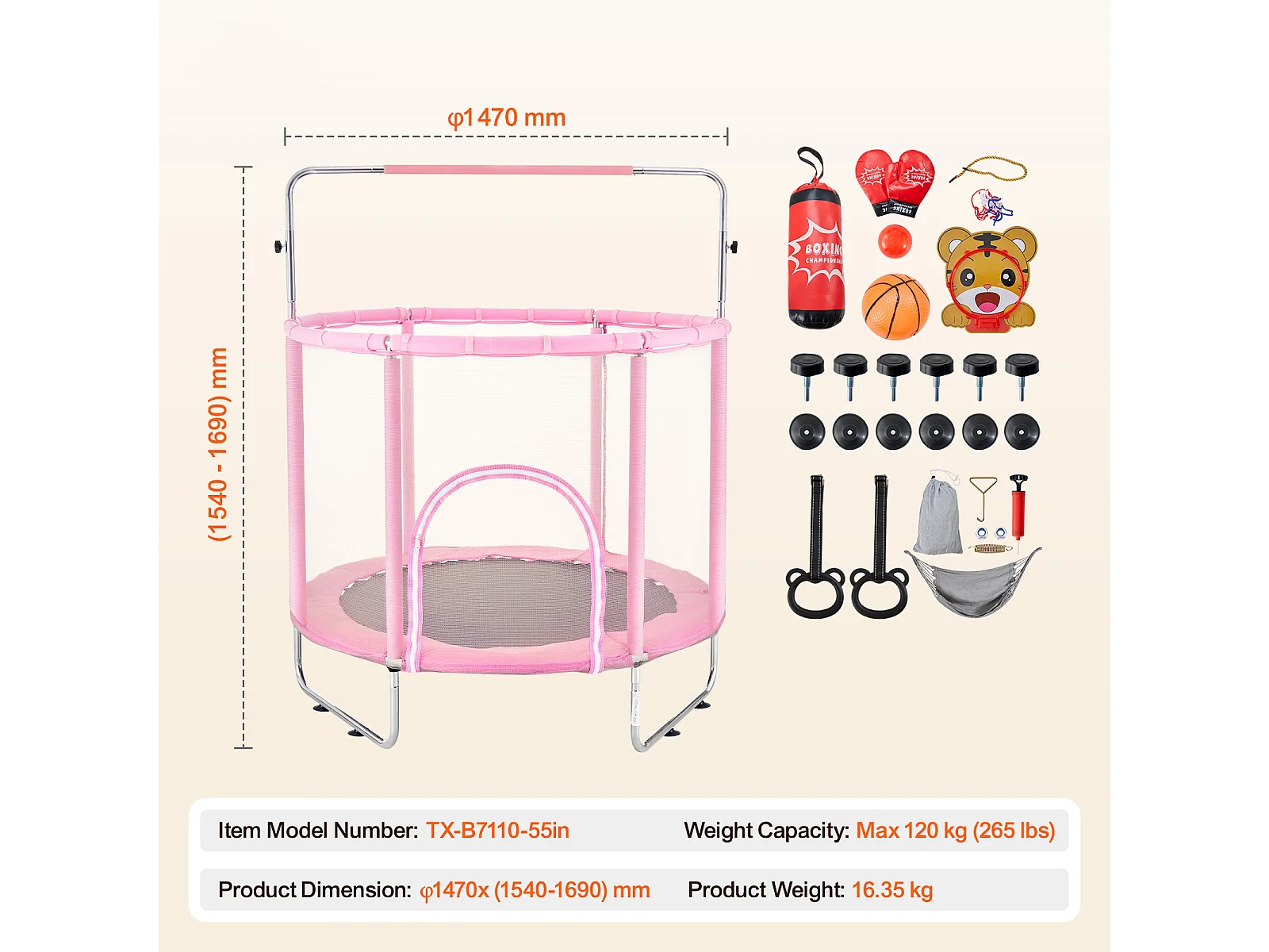 Trampolim SucceBuy Trampolim Infantil 140 cm, Mini Trampolim Infantil com Rede de Proteção, Interior e Exterior