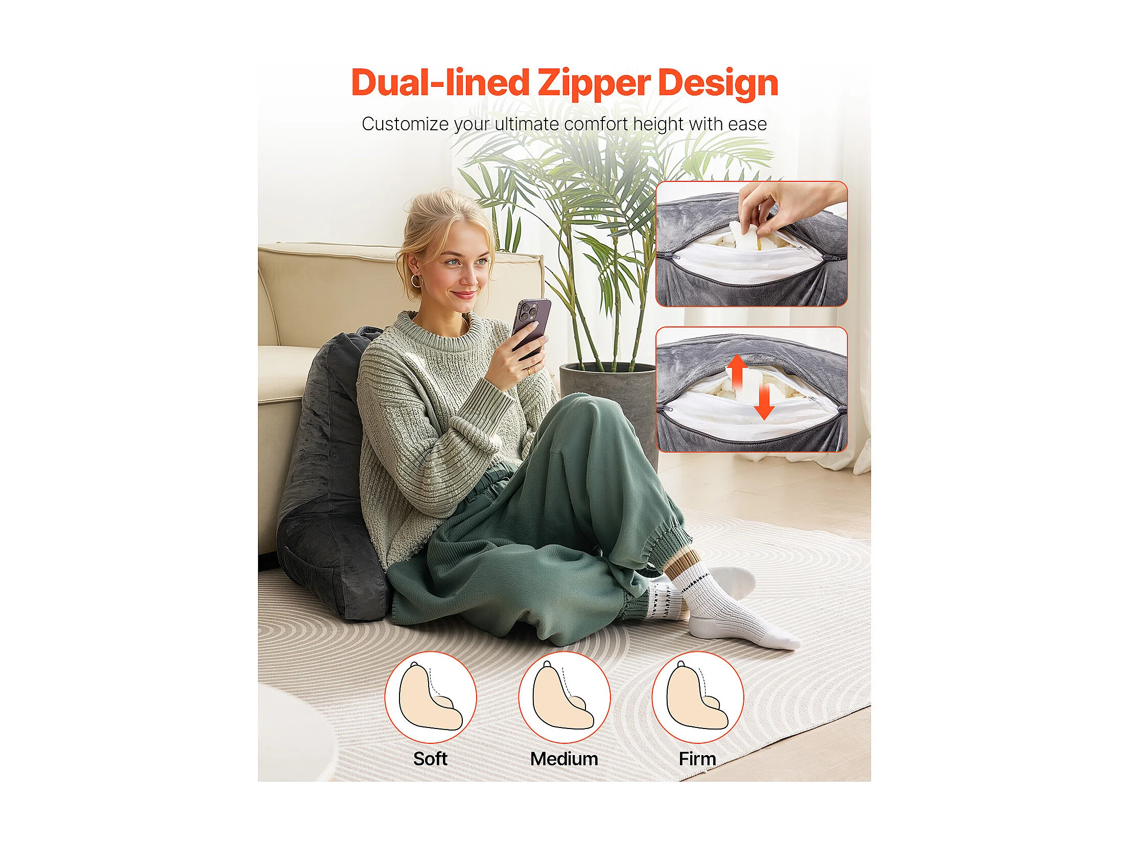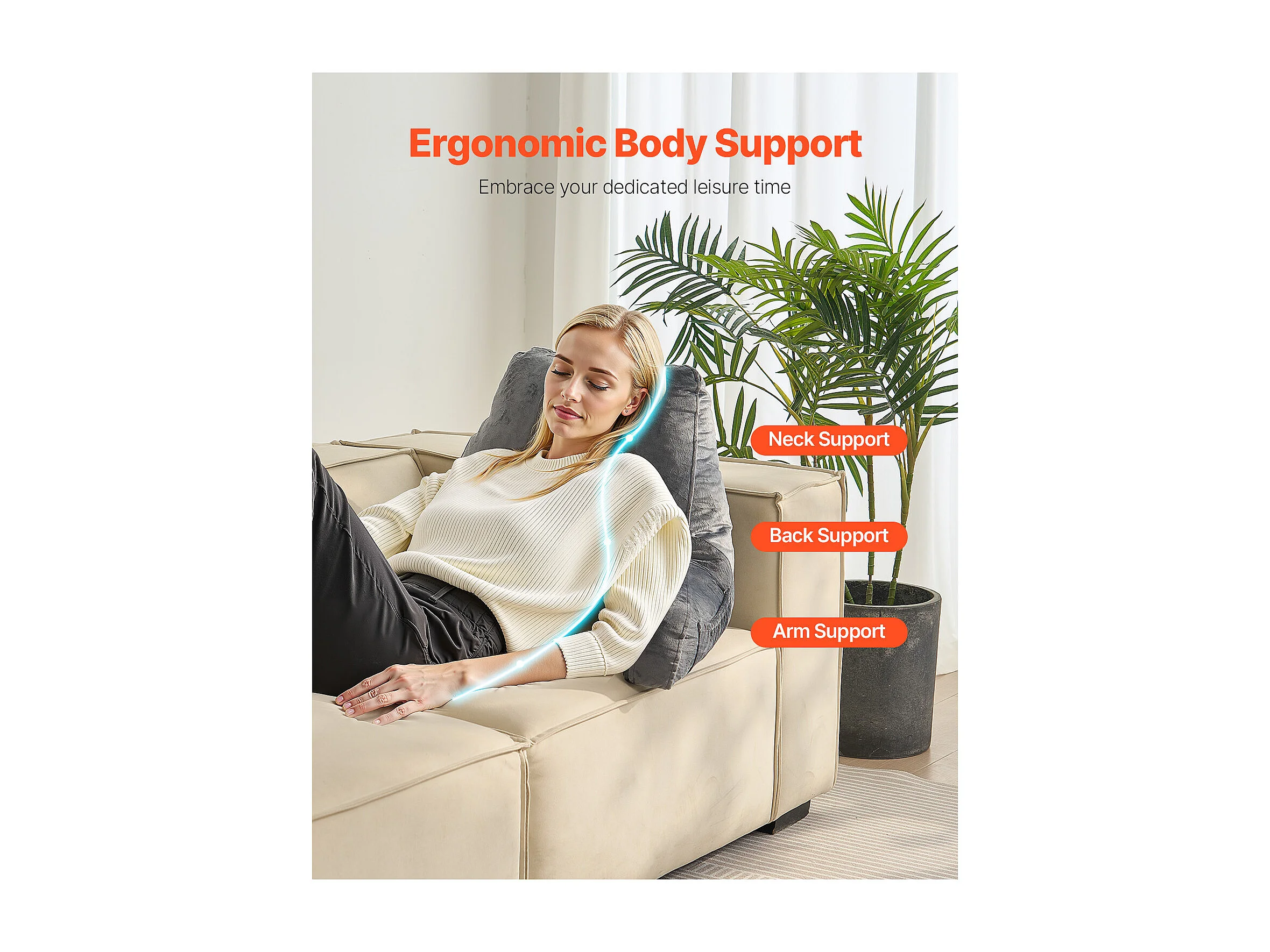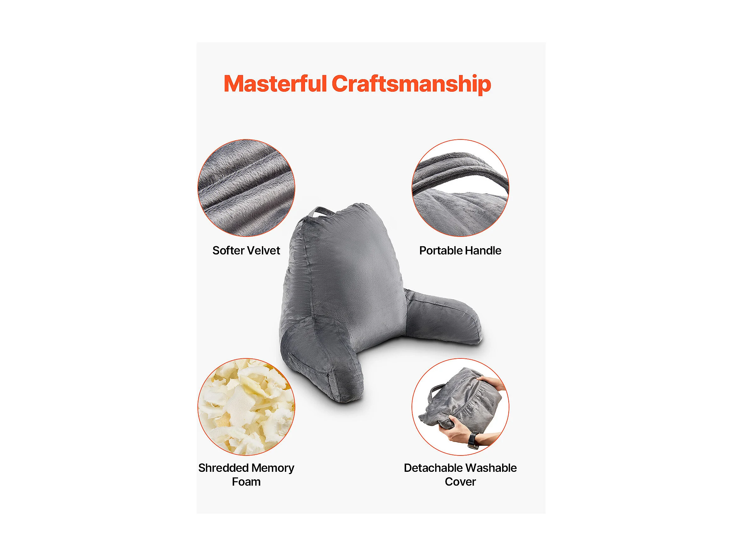 Travesseiro de Leitura SucceBuy em Espuma de Memória, Travesseiro de Apoio ,38.1 x 50.8 x 25.4 cm, com 3 Bolsos e Capa de Veludo Removível