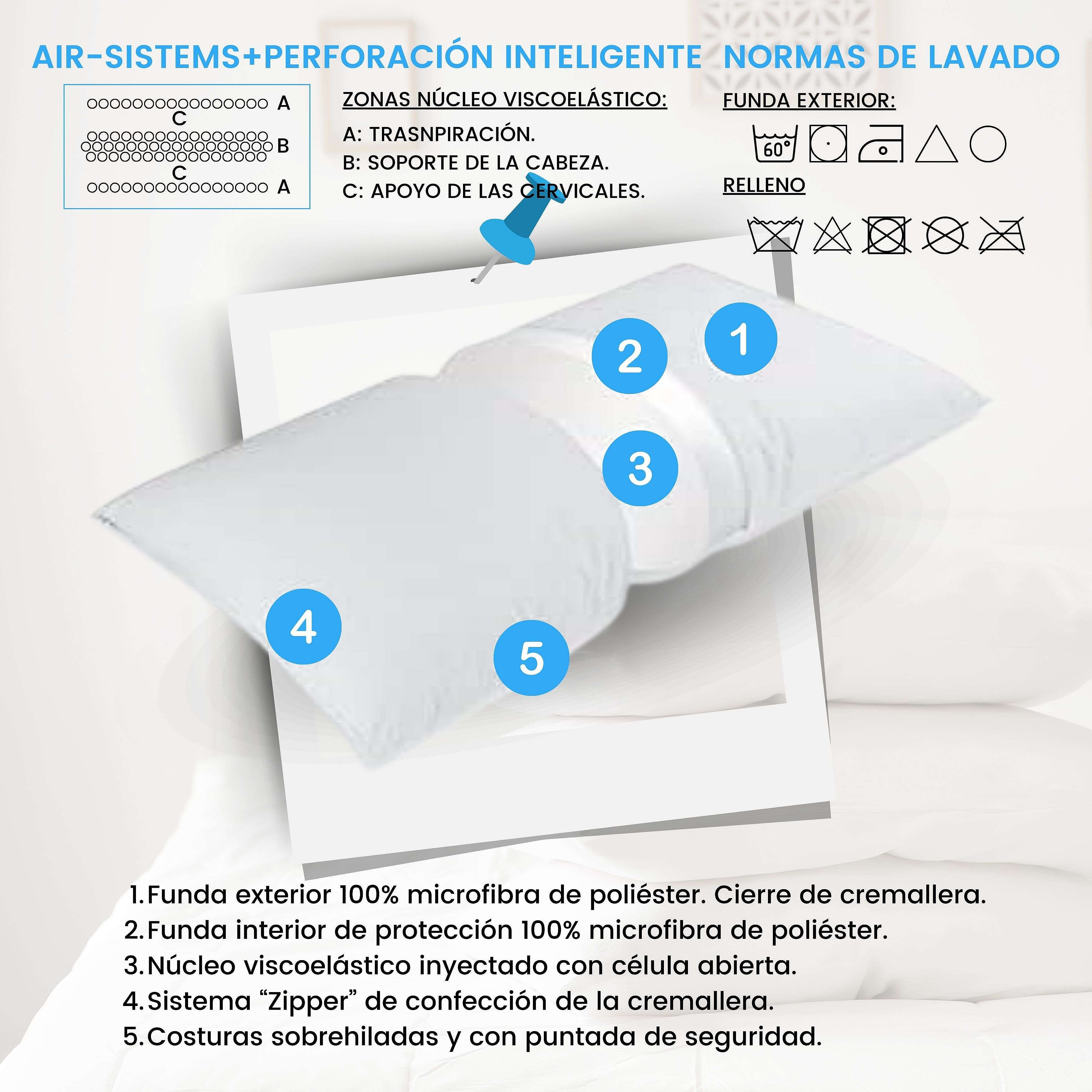 Almofada Viscoelástica Descansin | 80 cm | Efeito nuvem | Tecido de bambu | Alivia Tensões | Capa Dupla