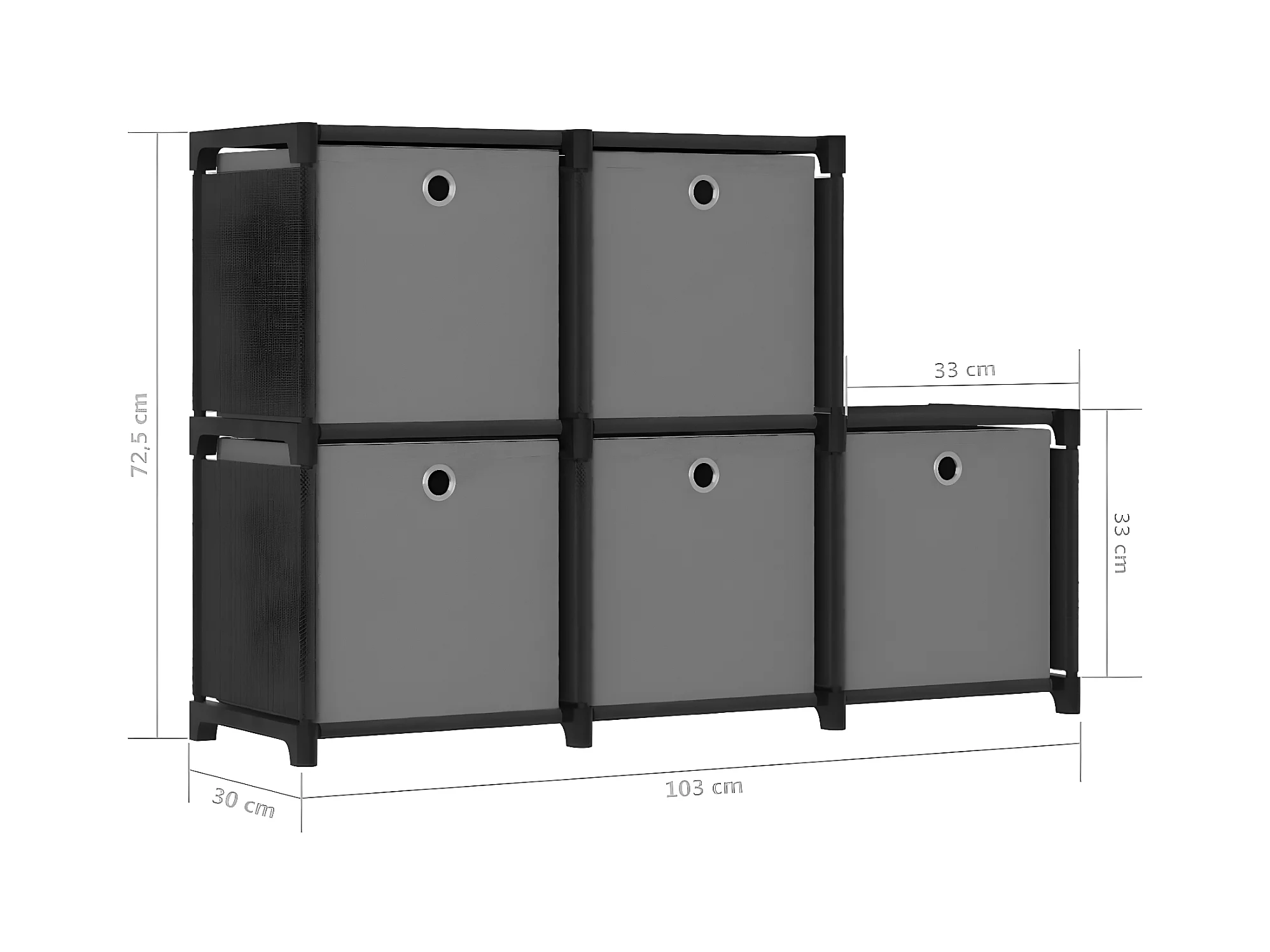 Unidade prateleira 5 cubos c/ caixas 103x30x72,5cm tecido preto