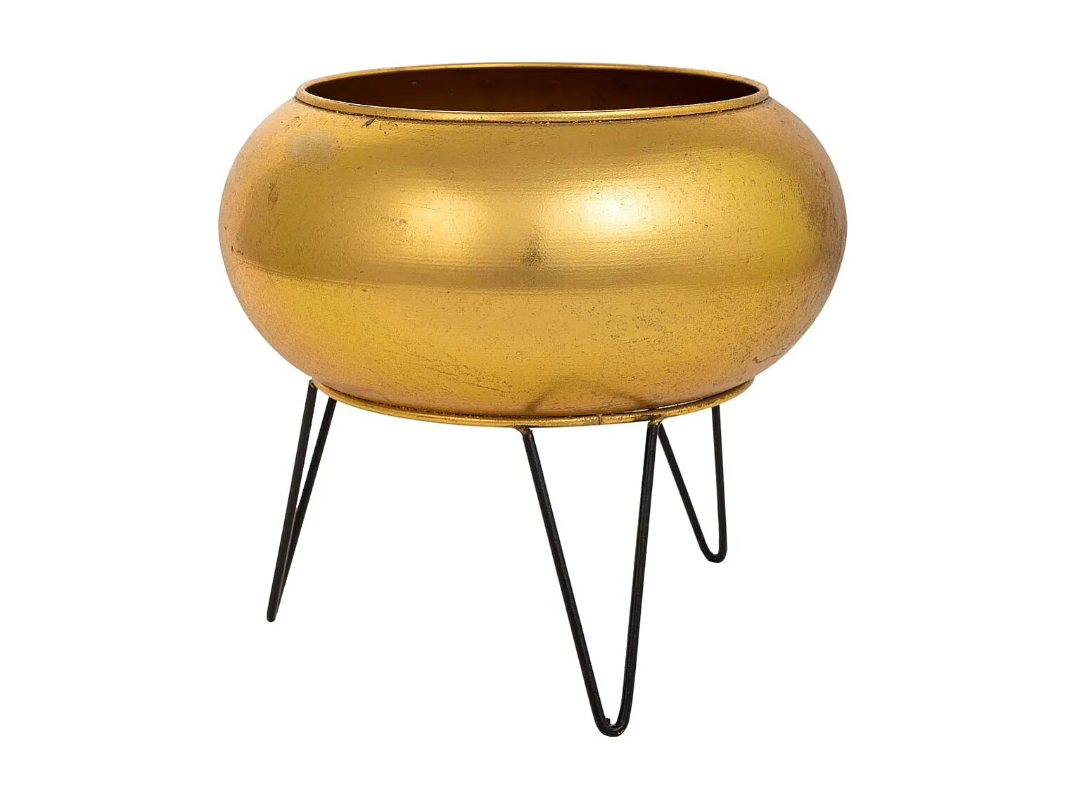 Vaso de flores com suporte em metal dourado 29x29x26,5