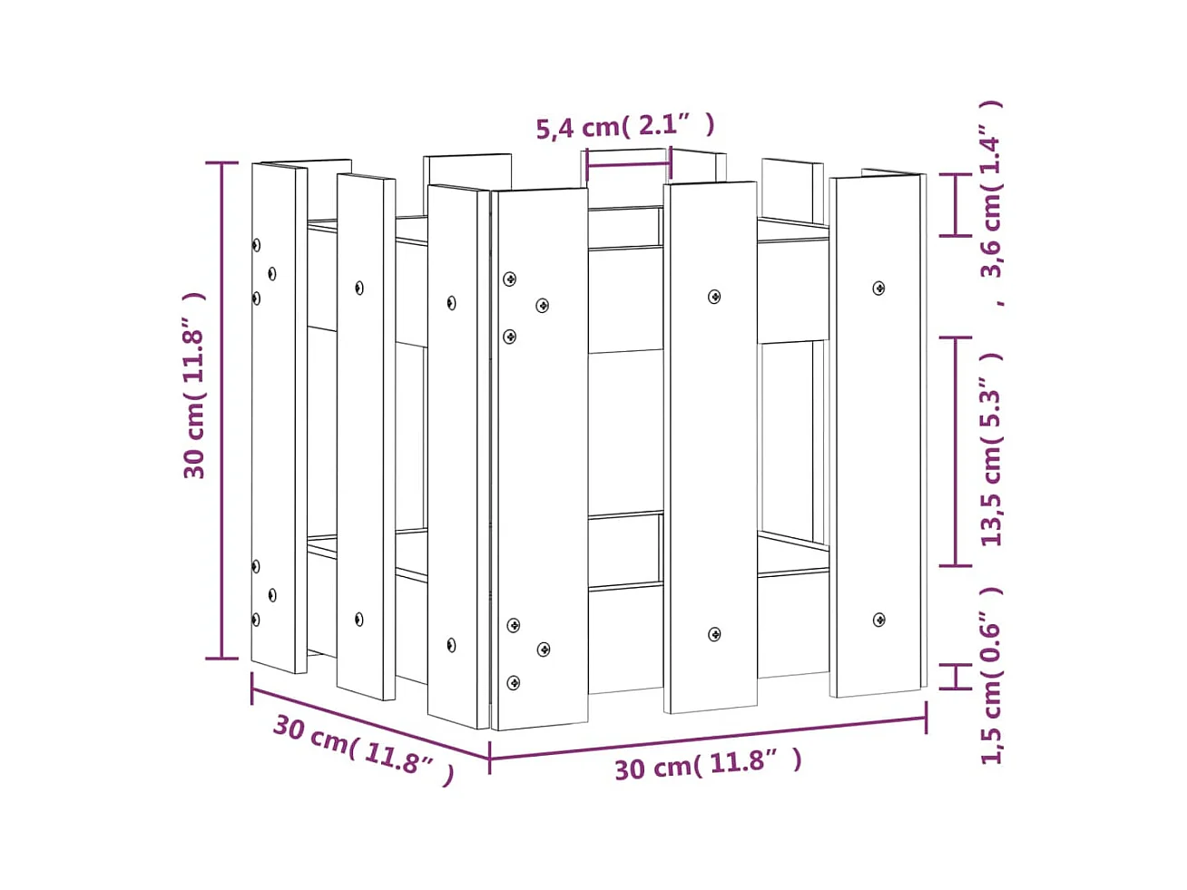 Vaso de jardim c/ design de cerca 30x30x30 cm pinho impregnado