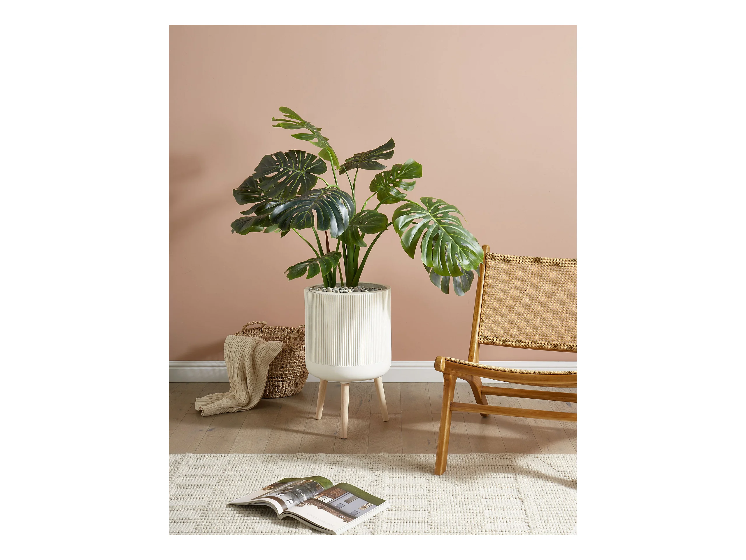 Vaso alto para plantas MACLURA Cerâmica 35 cm Creme claro