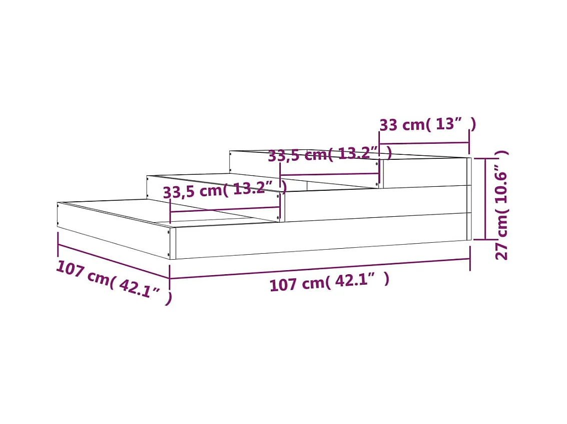 Vaso/floreira 107x107x27 cm pinho maciço cinzento