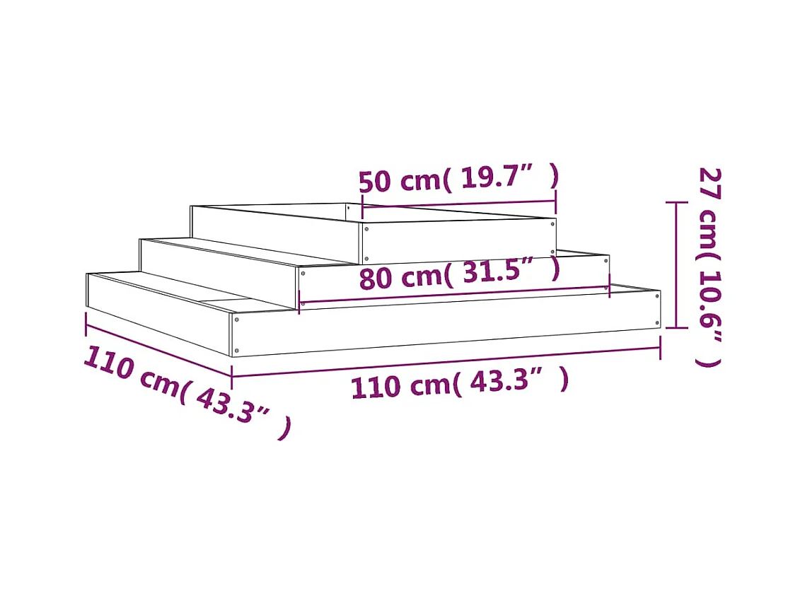 Vaso/floreira de jardim 110x110x26,5 cm pinho maciço branco PT535798