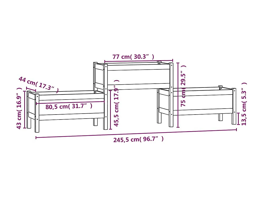 Vaso/floreira 245,5x44x75 cm pinho maciço preto