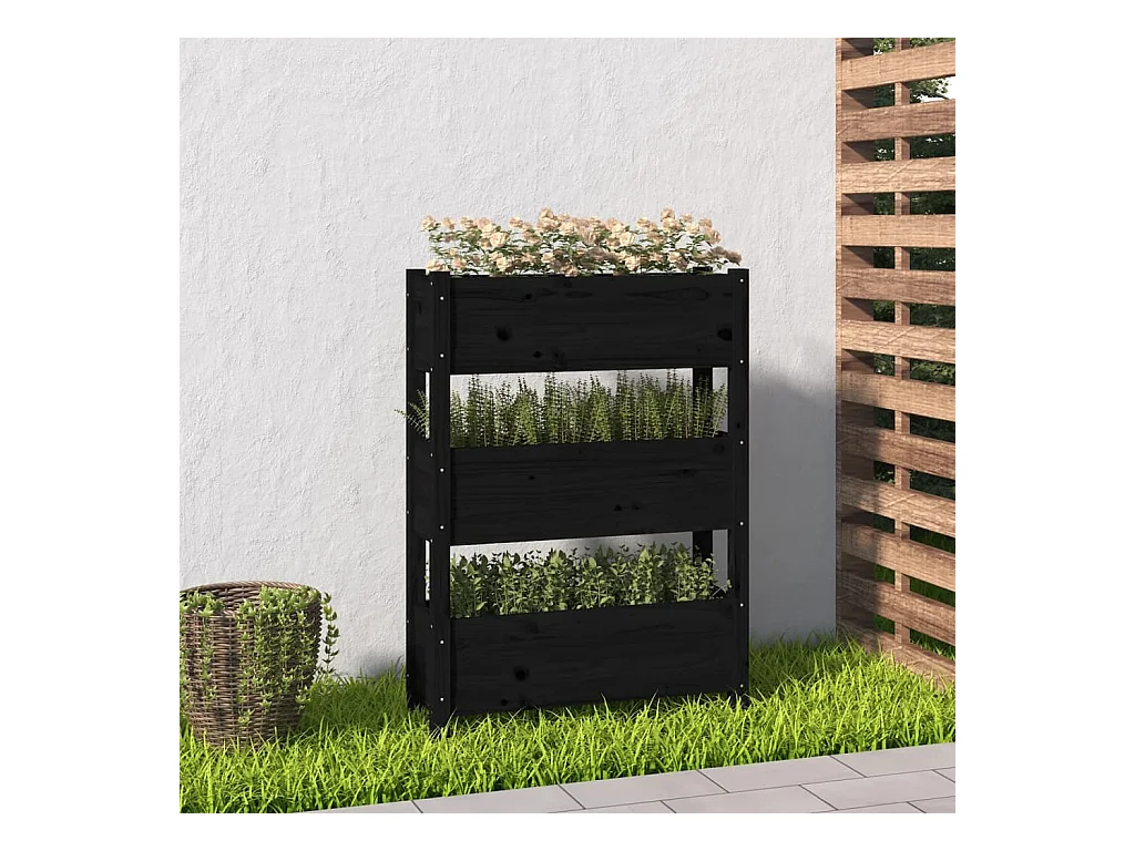 Vaso/floreira de jardim 62x30x69 cm pinho maciço preto