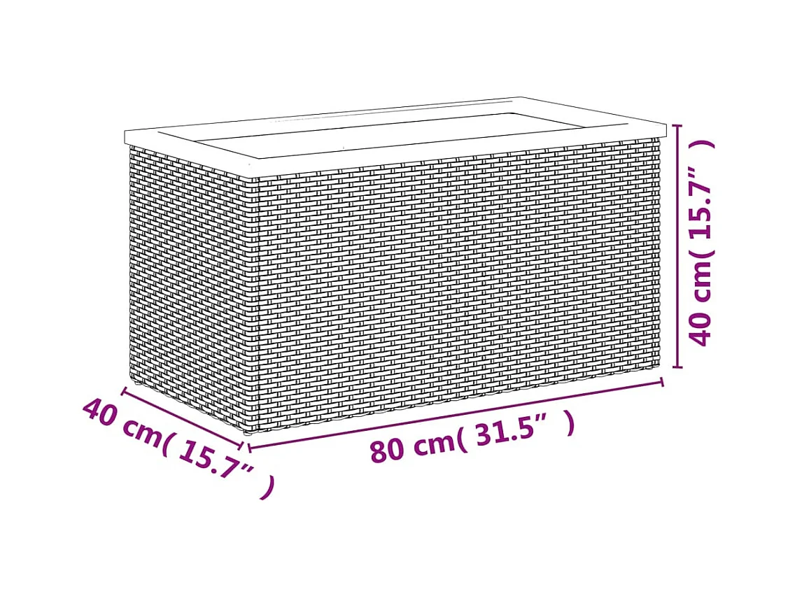 Vaso/floreira 80x40x40 cm vime PE preto
