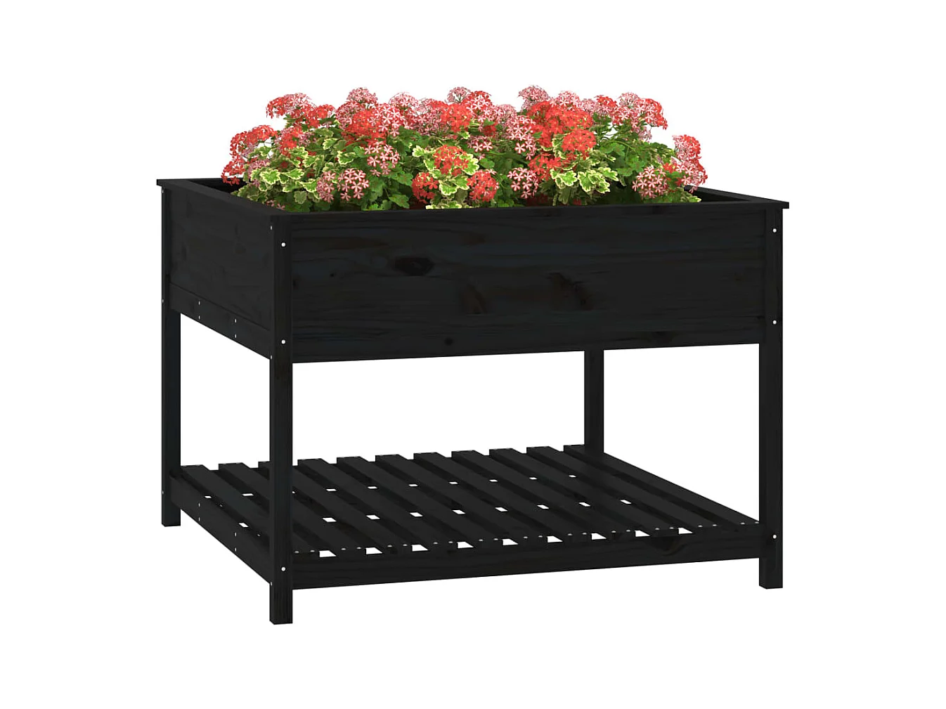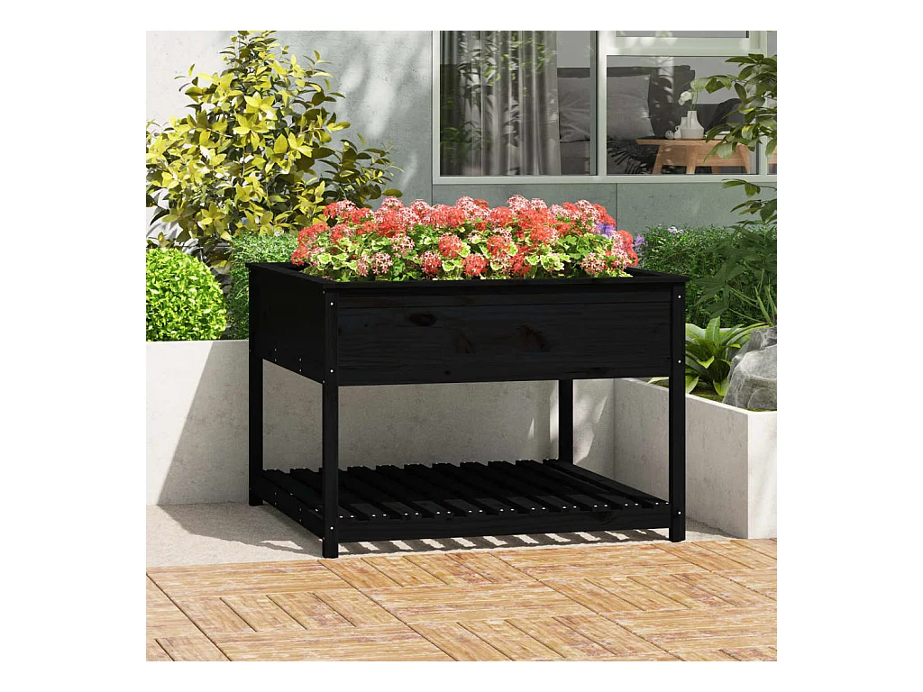 Vaso/floreira com prateleira 82,5x82,5x81 cm pinho maciço preto PT831677