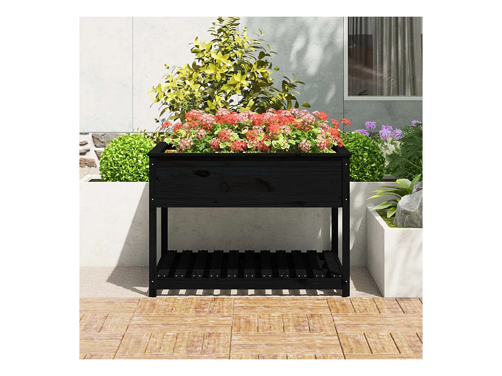 Vaso/floreira com prateleira 82,5x54x81 cm pinho maciço preto