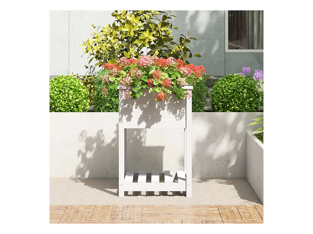Vaso/floreira com prateleira 82,5x54x81 cm pinho maciço branco PT828087