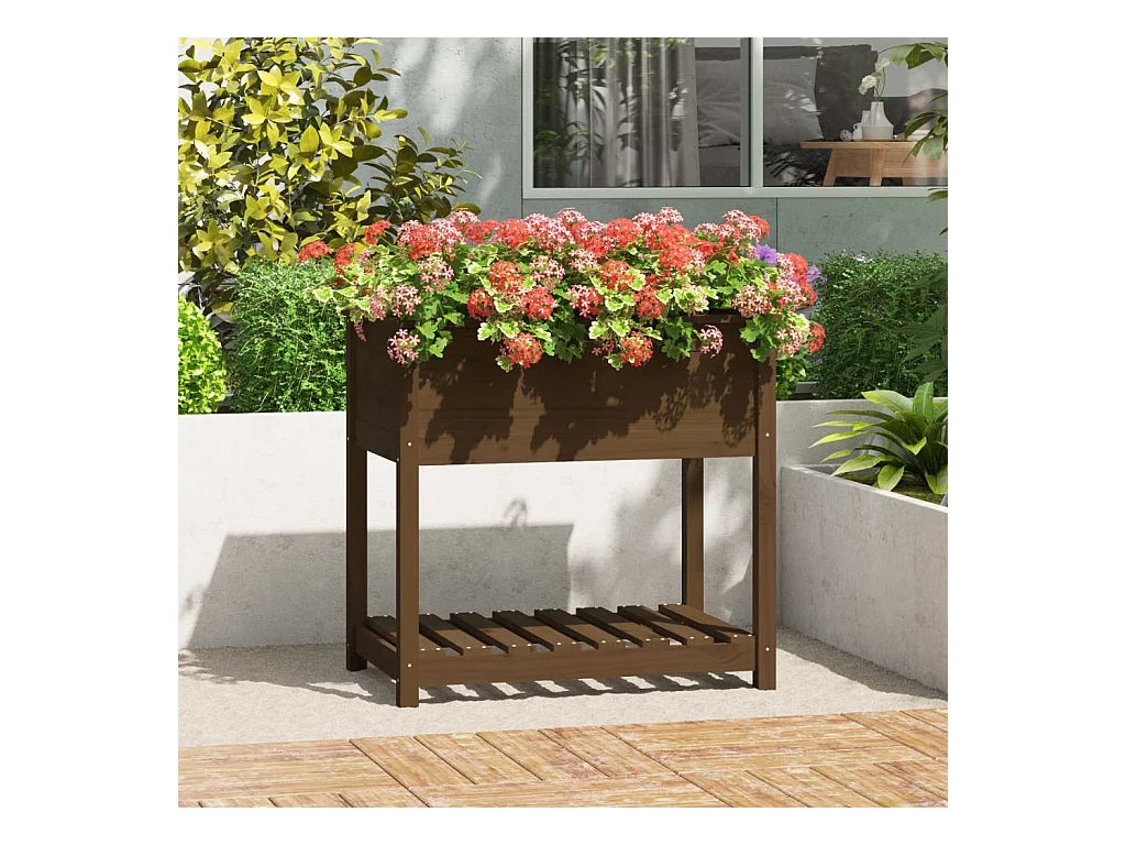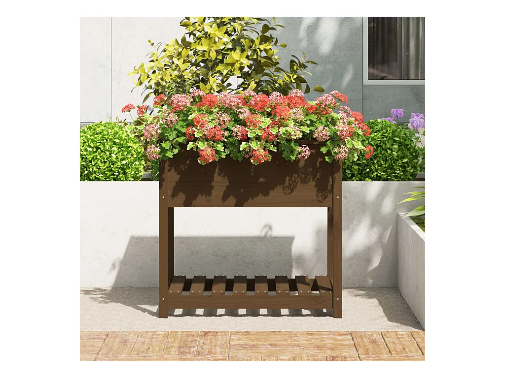 Vaso/floreira com prateleira 82,5x82,5x81 cm pinho maciço