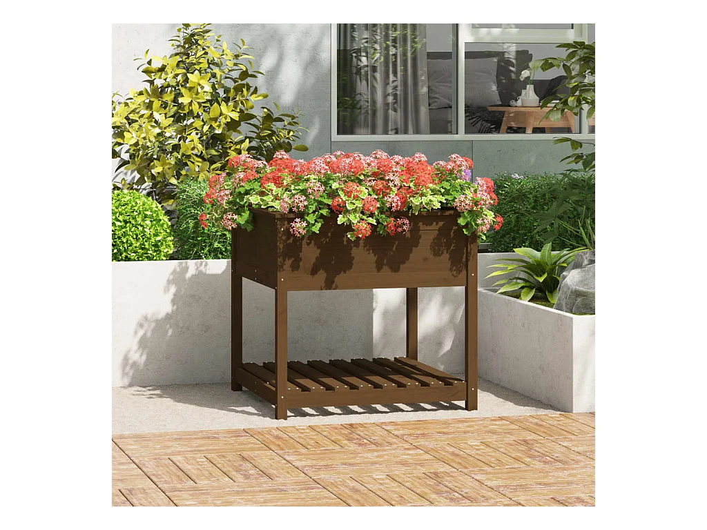 Vaso/floreira com prateleira 82,5x82,5x81 cm pinho maciço