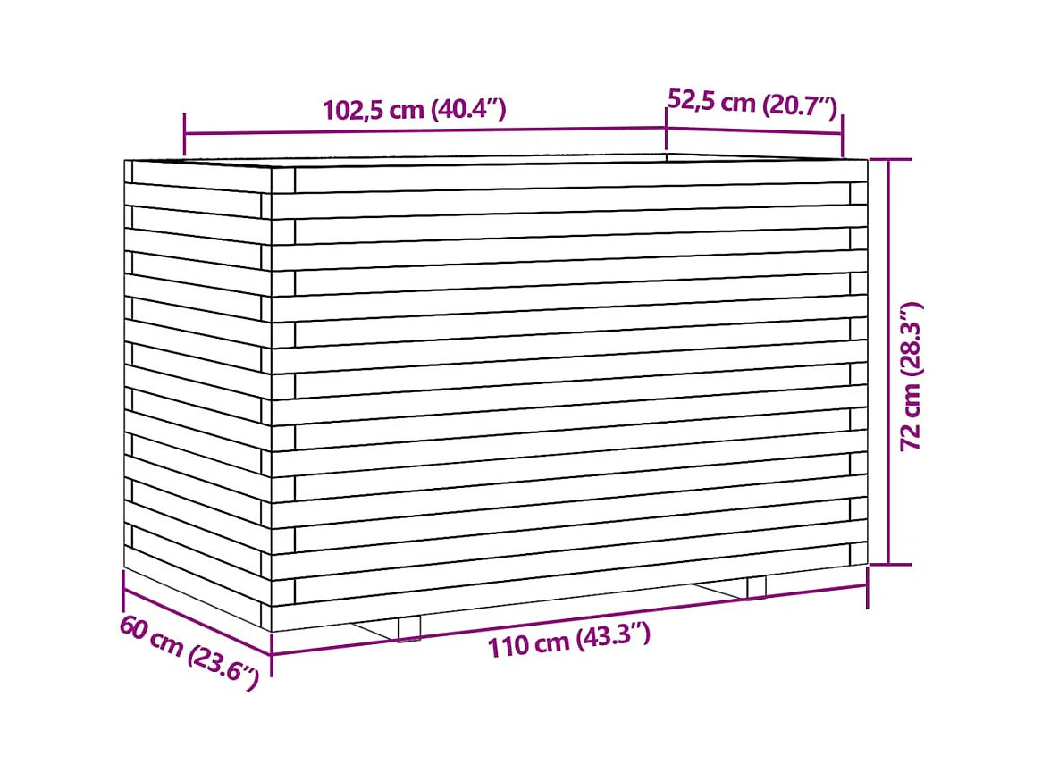 Vaso/floreira de jardim 110x60x72 cm madeira de douglas maciça