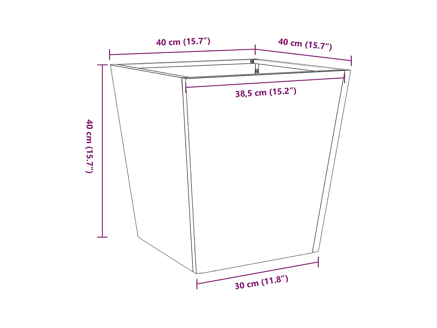 Vaso/floreira de jardim 40x40x40 cm aço preto