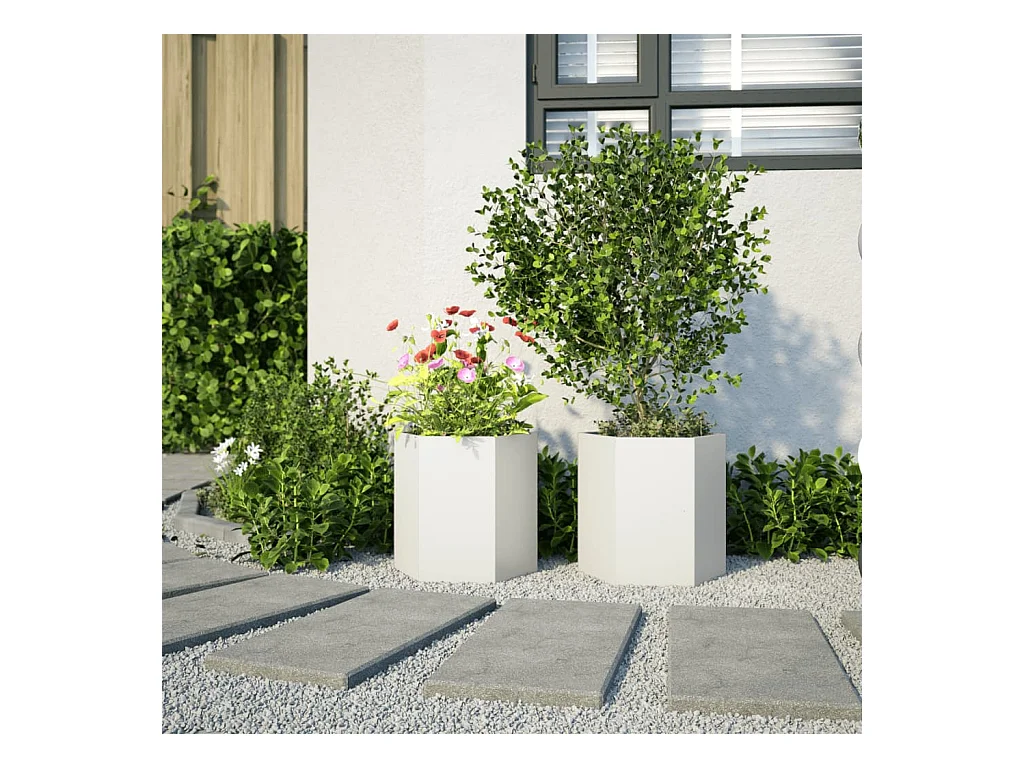 Vaso/floreira de jardim 2 pcs hexagonal 46x40x45 cm aço branco