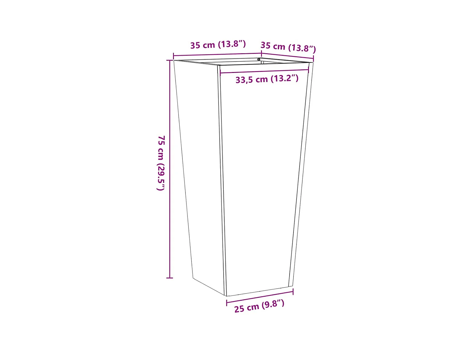 Vaso/floreira de jardim 35x35x75 cm aço inoxidável