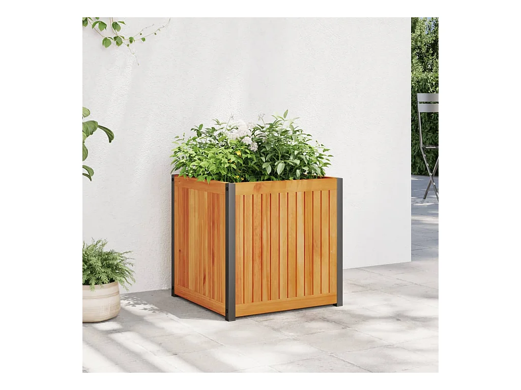 Vaso/floreira de jardim 45x45x44 cm acácia maciça e aço PT294262