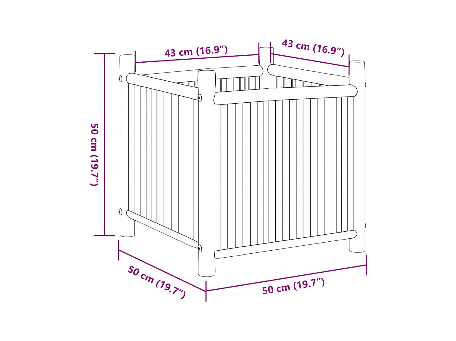 Vaso/floreira de jardim 50x50x50 cm bambu