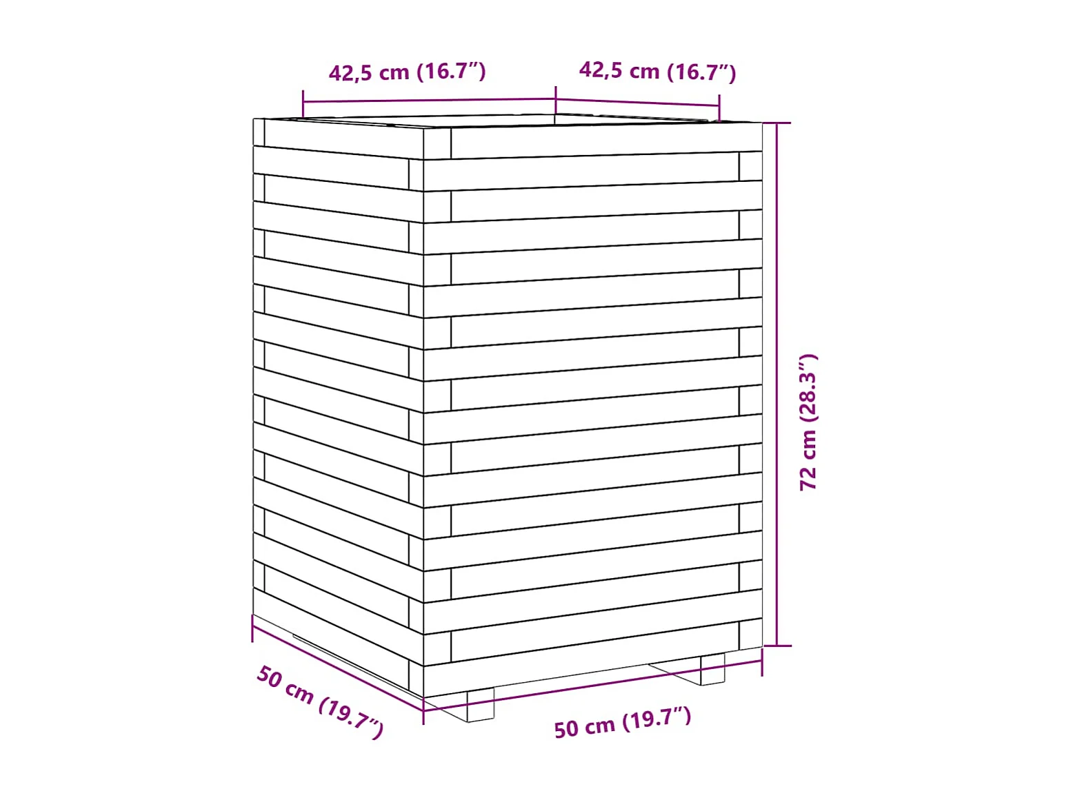 Vaso/floreira de jardim 50x50x72 cm madeira de douglas maciça