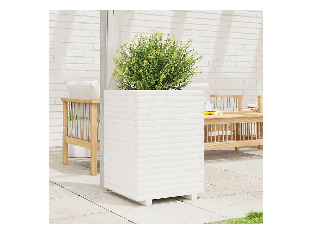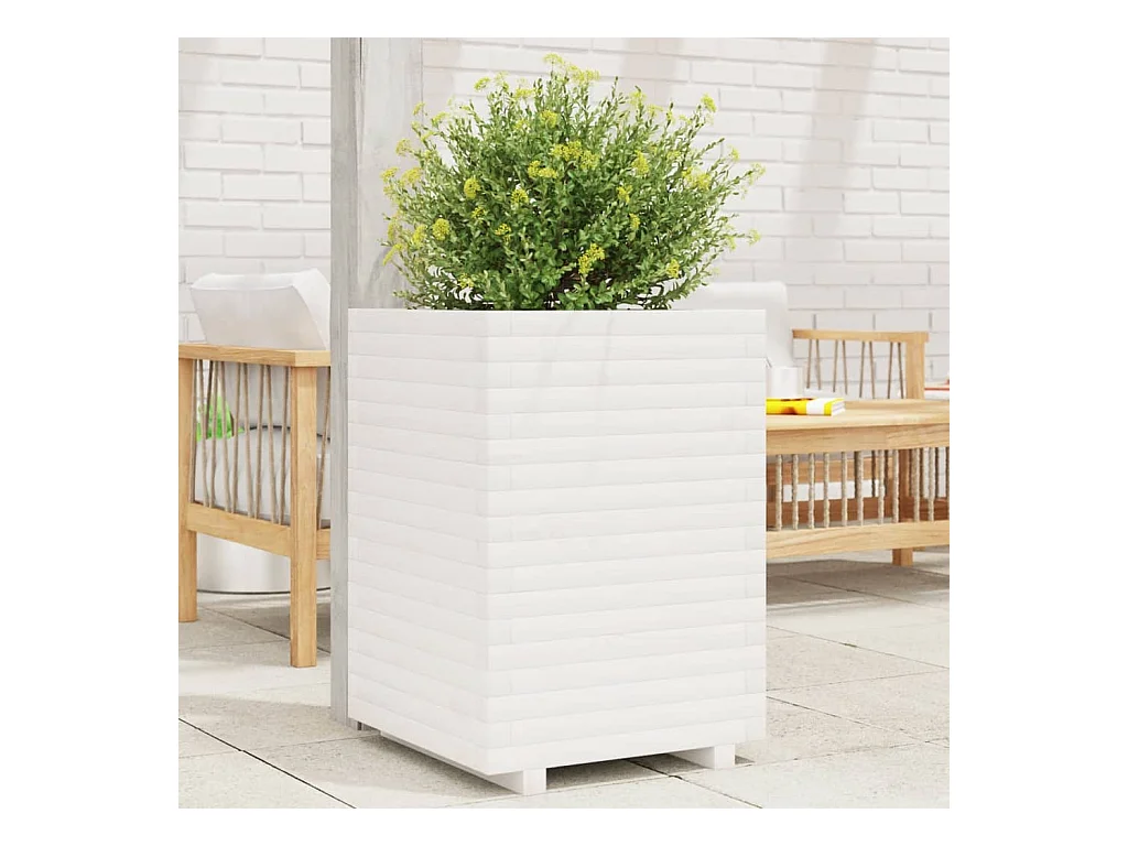 Vaso/floreira de jardim 50x50x72 cm pinho maciço branco