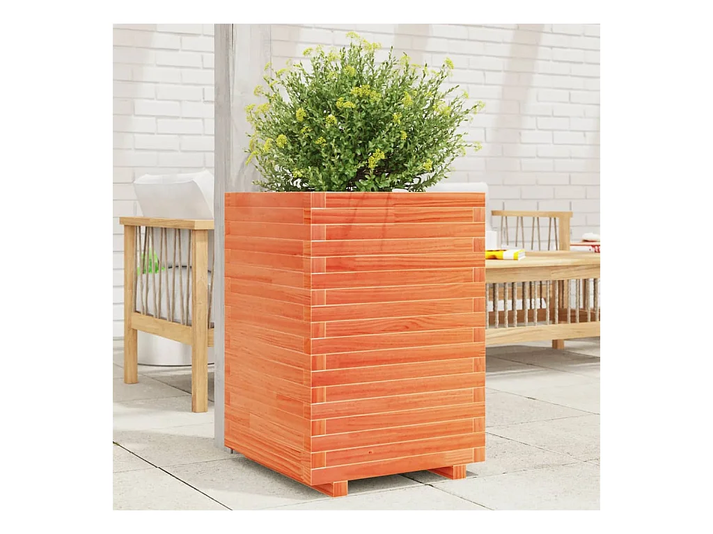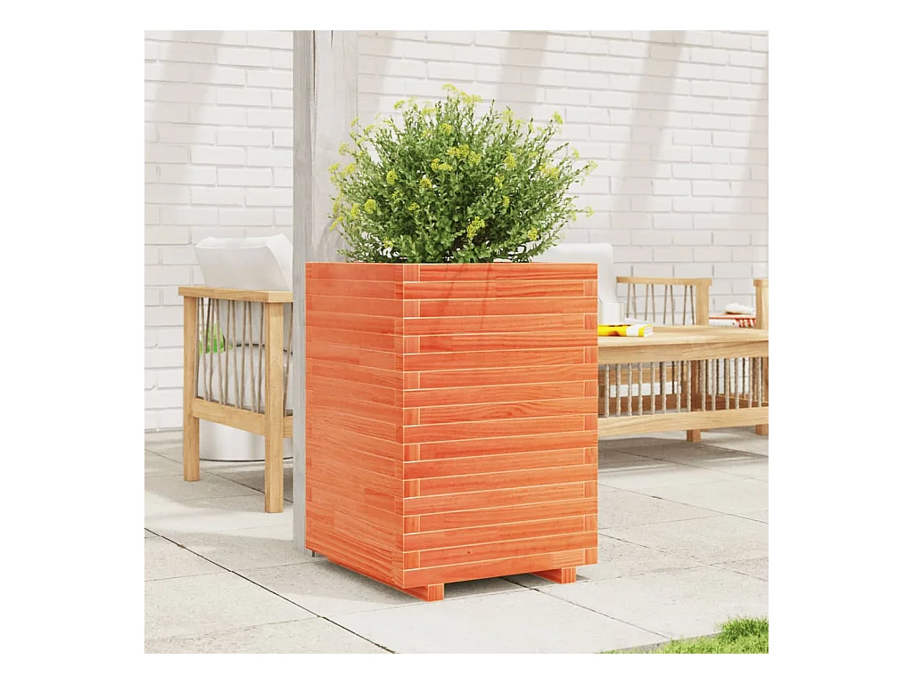 Vaso/floreira de jardim 50x50x72 cm madeira de pinho impregnada PT427962