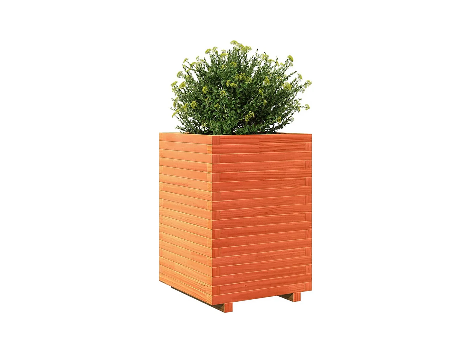 Vaso/floreira de jardim 50x50x50 cm pinho maciço castanho cera PT180516