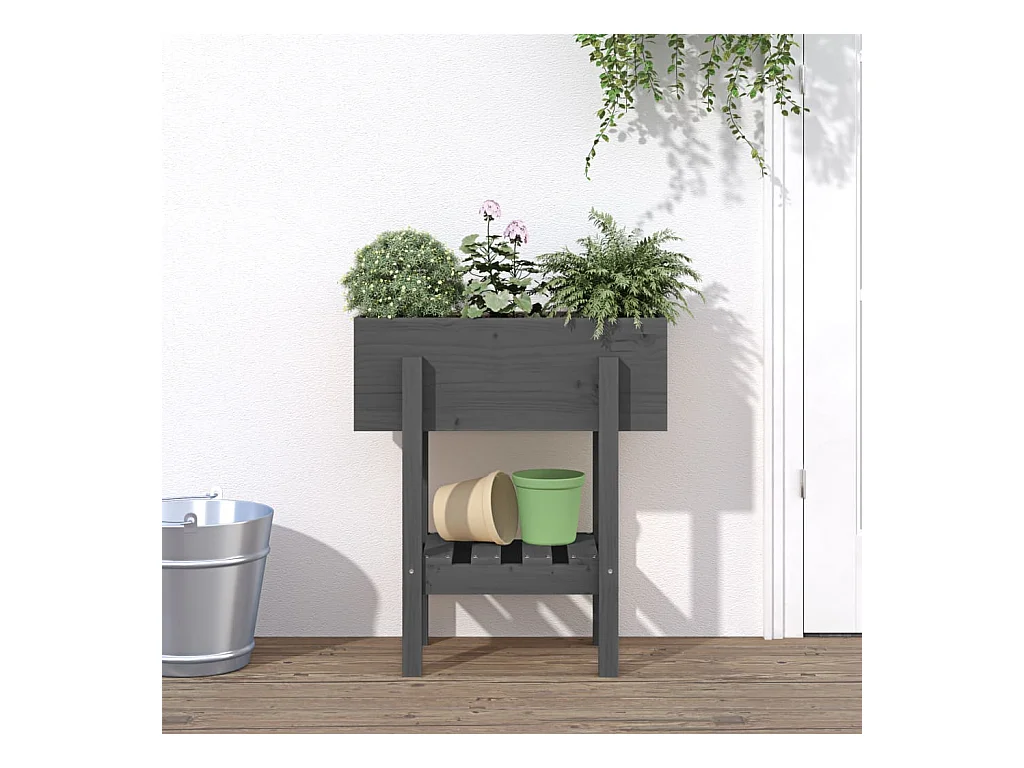 Vaso/floreira de jardim 62x30x69 cm pinho maciço cinzento