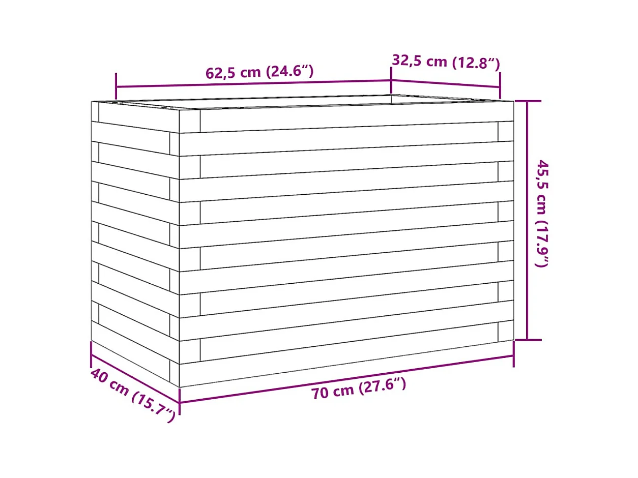 Vaso/floreira de jardim 70x40x45,5 madeira de pinho impregnada