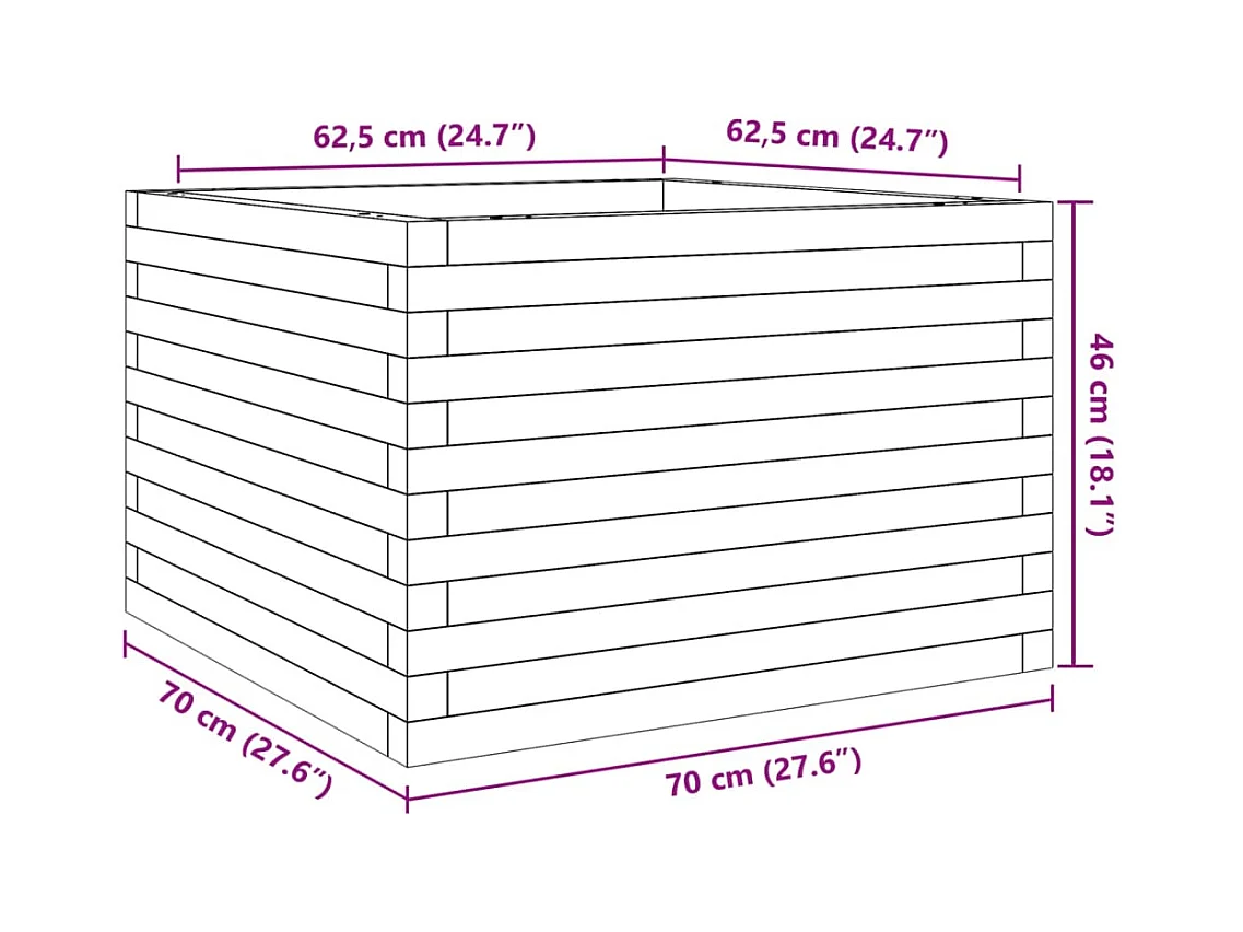 Vaso/floreira de jardim 70x70x72 cm madeira de pinho impregnada