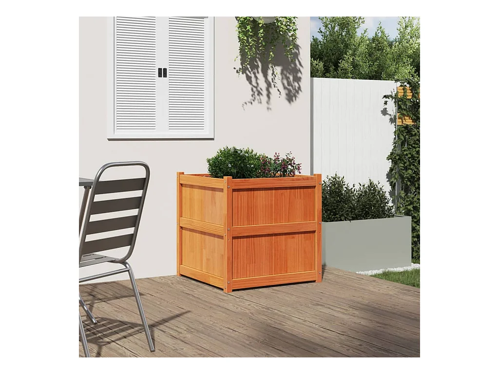 Vaso/floreira de jardim 70x70x70 cm pinho maciço castanho cera
