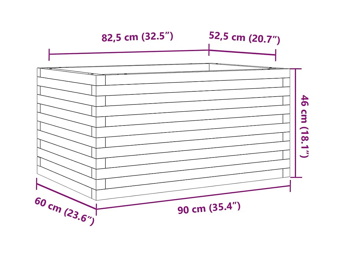 Vaso/floreira de jardim 90x60x72 cm madeira de pinho maciça PT894401