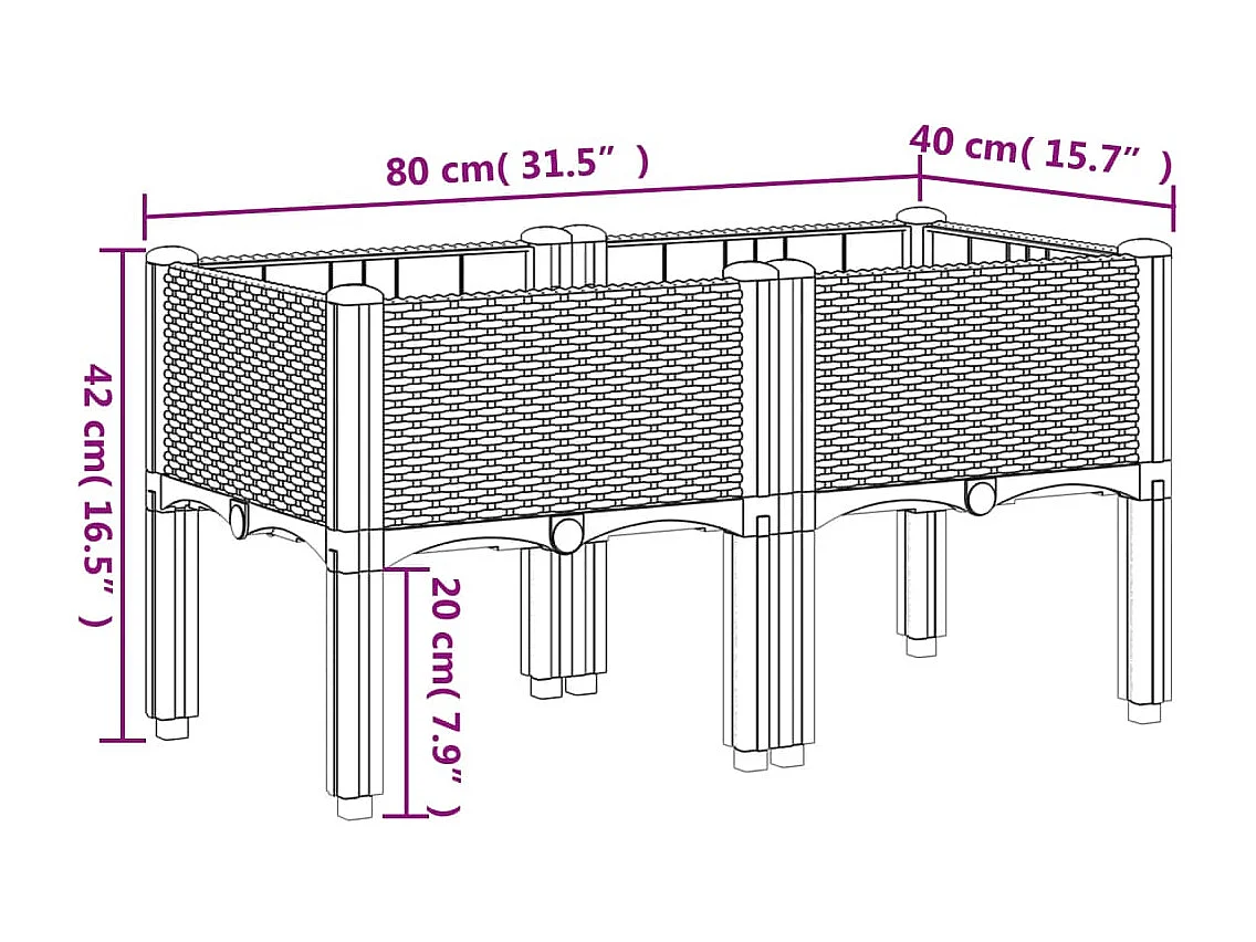 Floreira canteiro elevado floreira terraço jardim com pés 160 x 40 x 42 cm PP marrom 02_0038159