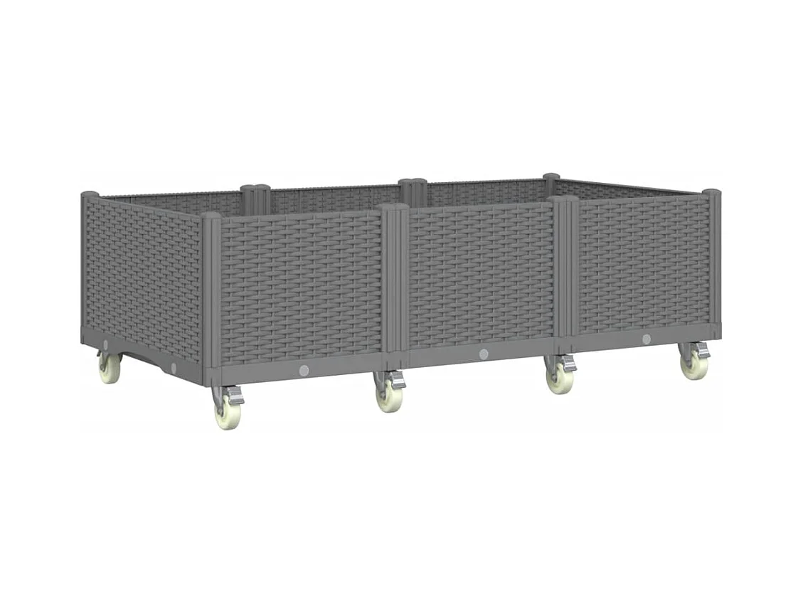 Vaso/floreira de jardim com rodas 160x50x54 cm PP cinzento PT311385