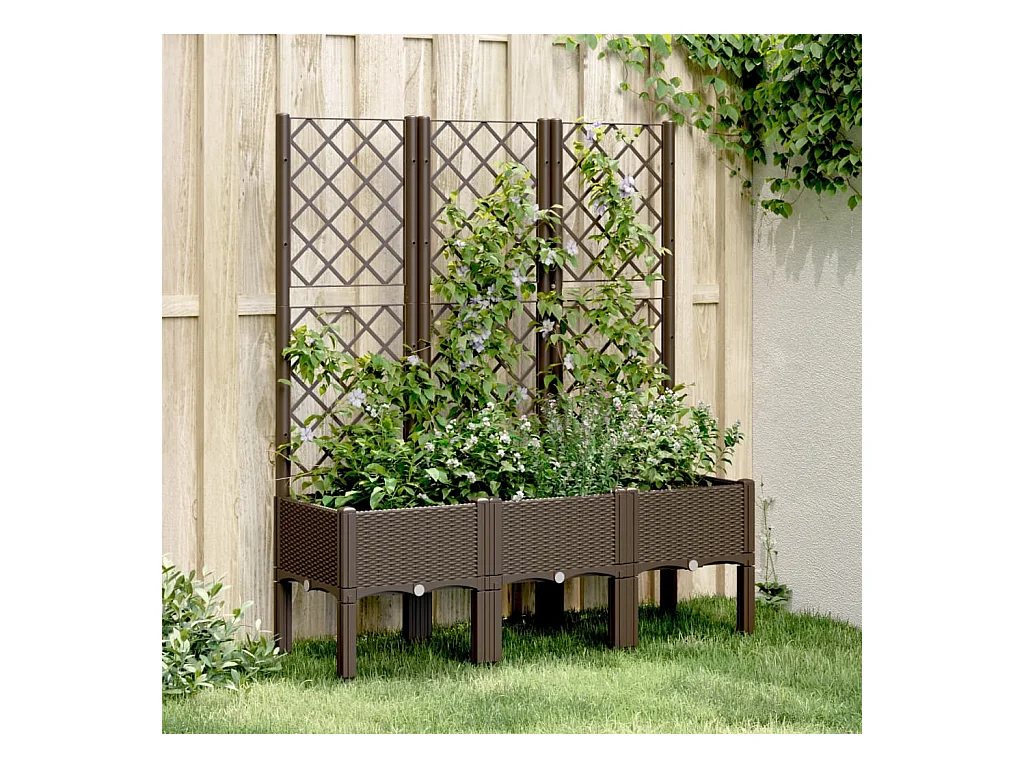 Vaso/floreira de jardim c/ treliça 120x40x142 cm PP castanho