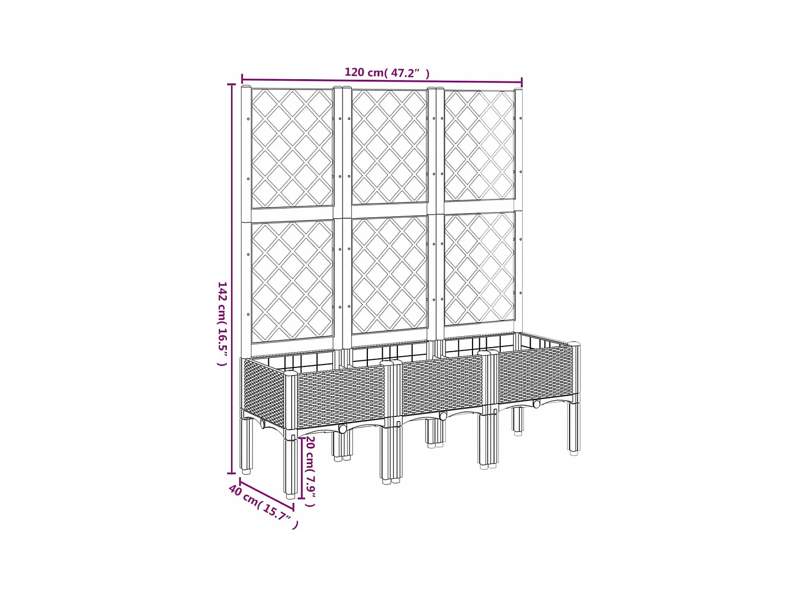 Vaso/floreira de jardim c/ treliça 160x40x142,5cm PP castanho