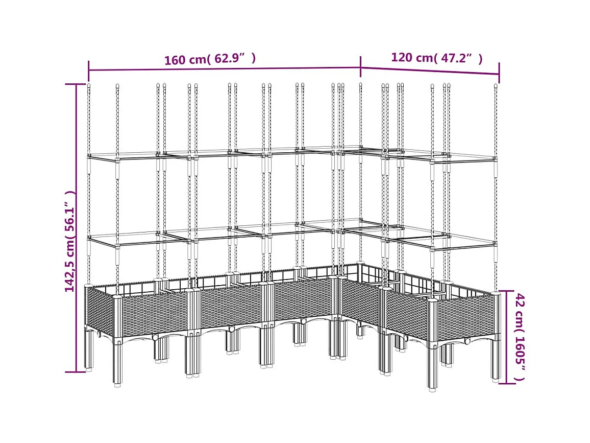 Vaso/floreira de jardim c/ treliça 160x120x142 cm PP preto
