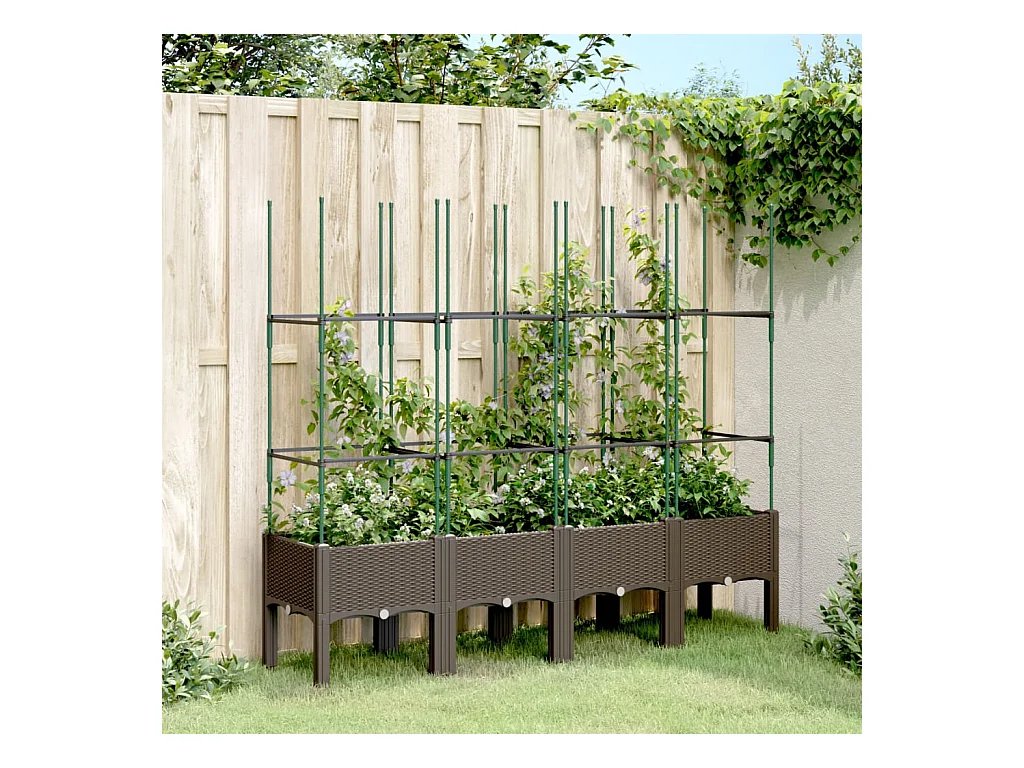 Vaso/floreira de jardim c/ treliça 120x40x142 cm PP castanho