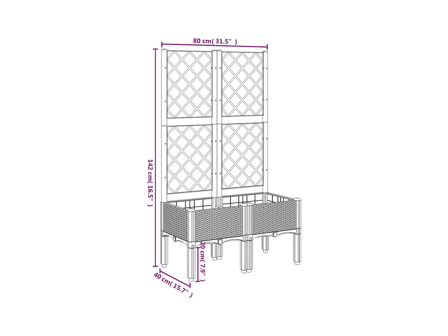 Vaso/floreira de jardim c/ treliça 80x40x142,5 cm PP castanho