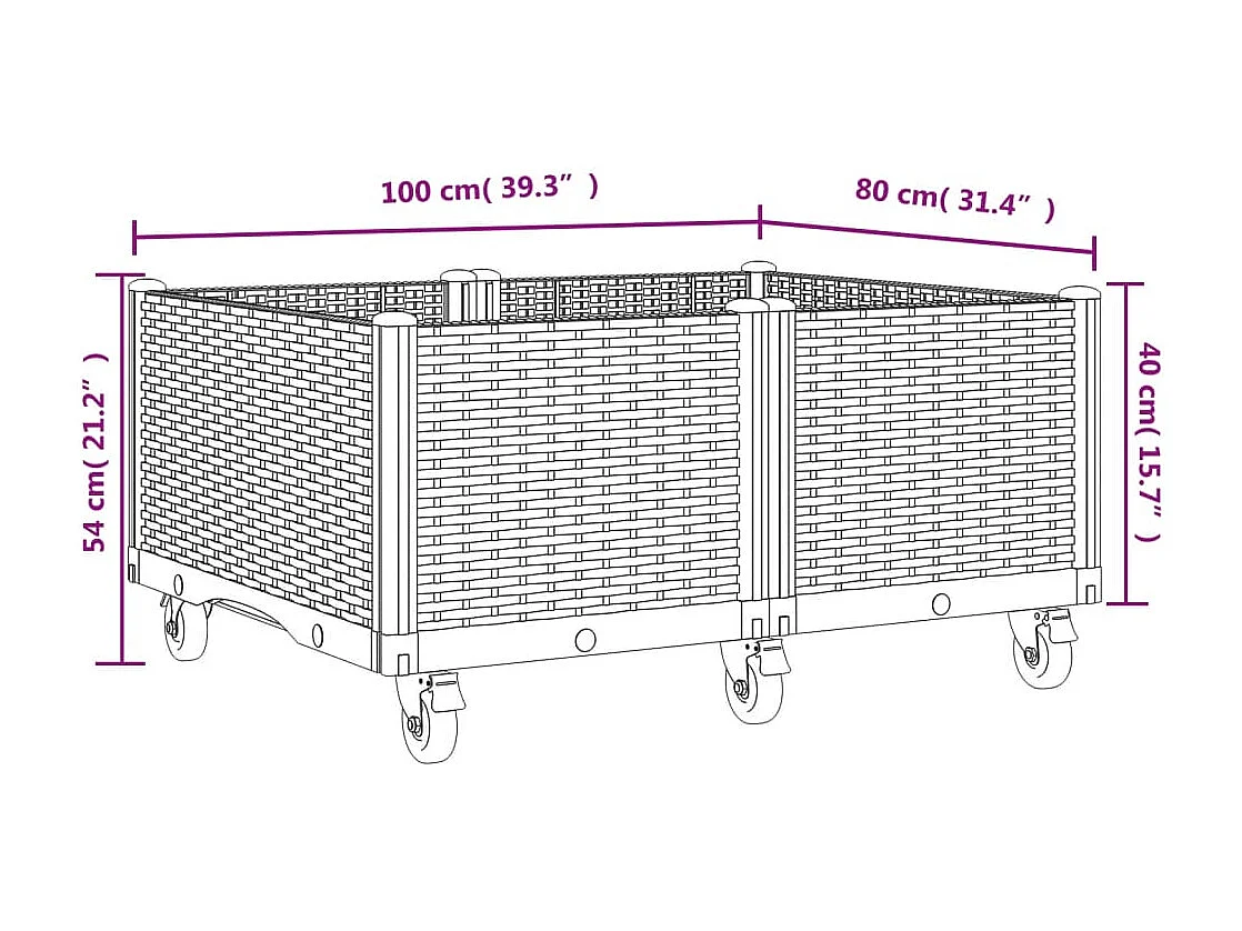 Vaso/floreira de jardim com rodas 100x80x54 cm PP branco