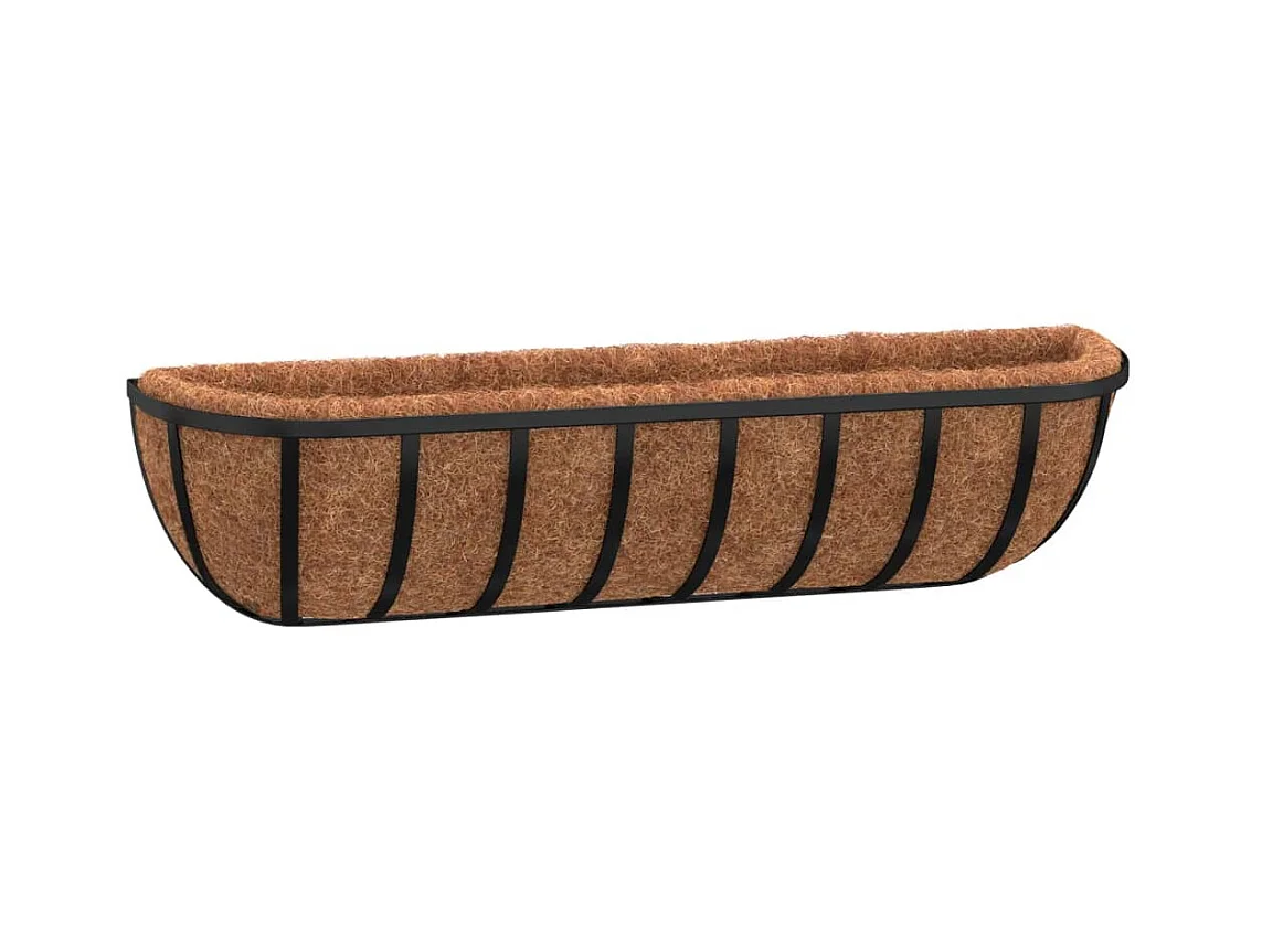Vasos de parede 2 pcs c/ forro de coco 61x19x16 cm aço preto PT757947